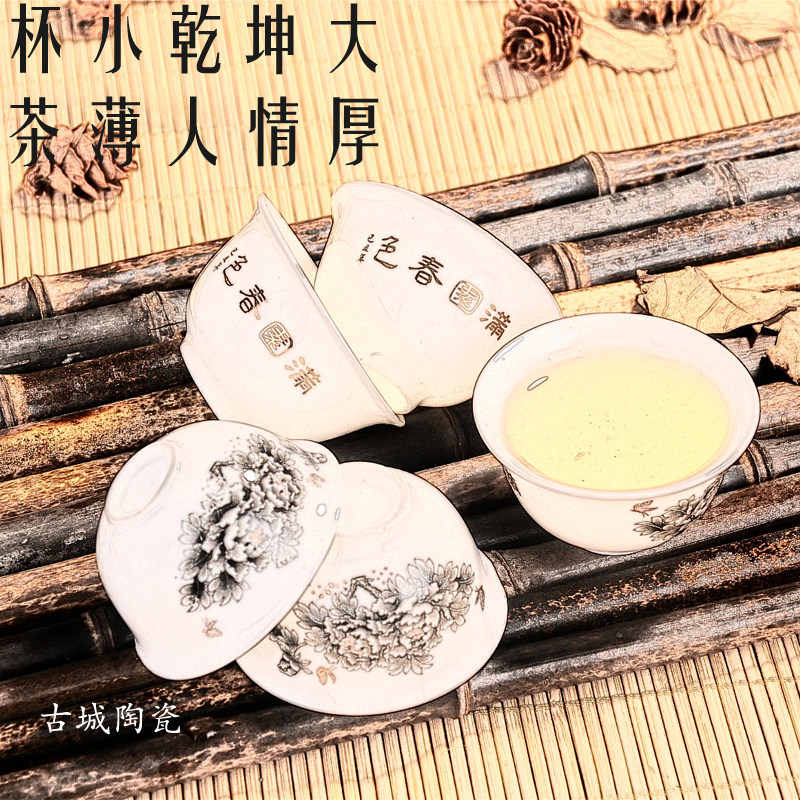 淘宝古城陶瓷艺术馆,功夫茶具品茗杯青花泡茶家用一口杯