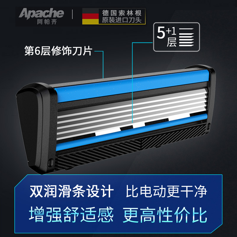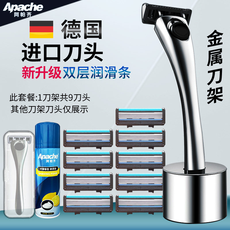天猫谦德家居专营店,刮胡刀阿帕齐剃须刀手动德国刀片,升级款进口5层刀片 金属刀架 质感顺爽剃须