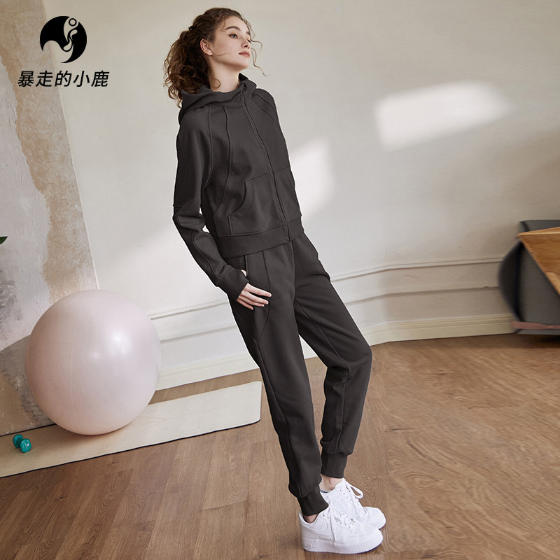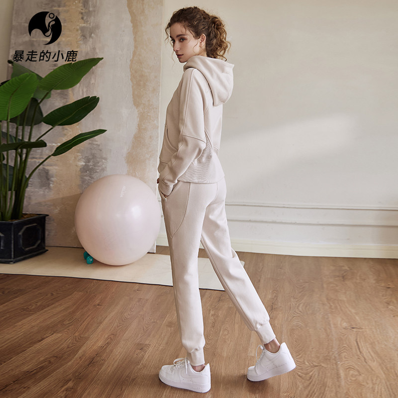 天猫暴走的小鹿旗舰店,加绒加厚瑜伽服套装女秋冬款连帽口袋运动服