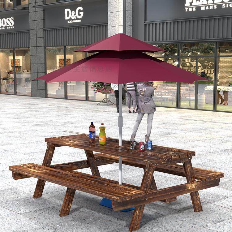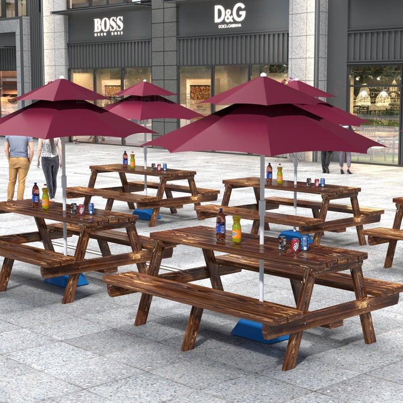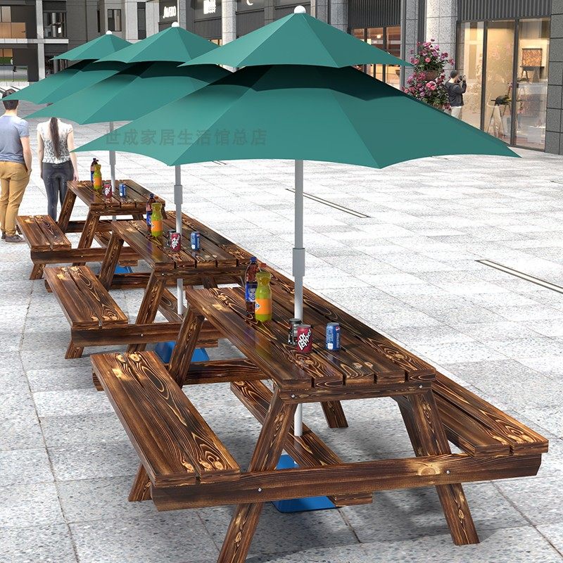 淘宝益诚户外工厂店,户外桌椅组合奶茶咖啡店庭院室外食堂连体餐桌椅带伞公园实木防腐