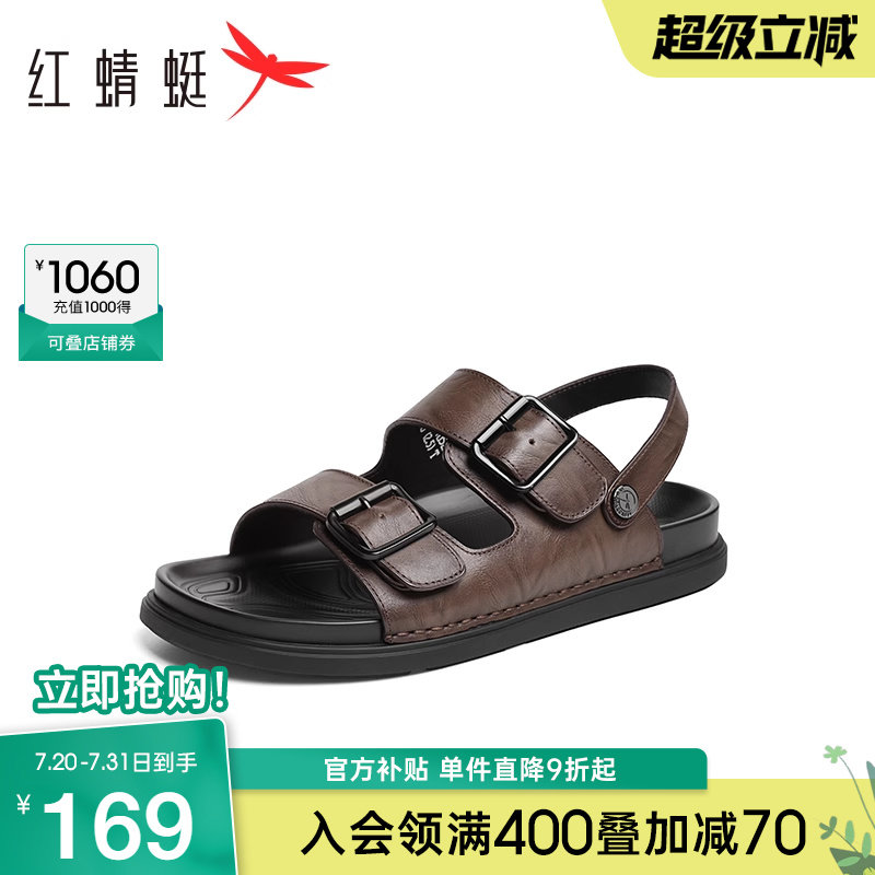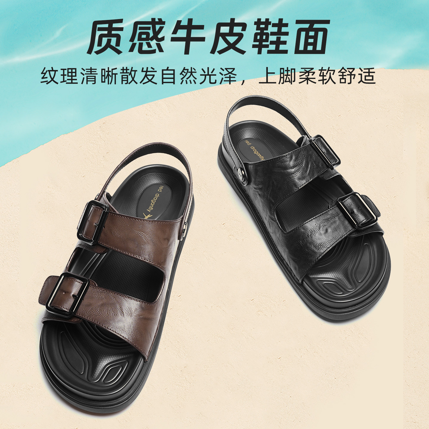 天猫红蜻蜓男鞋官方旗舰店,红蜻蜓男士凉鞋爸爸凉鞋软底休闲,真皮沙滩鞋 透气休闲