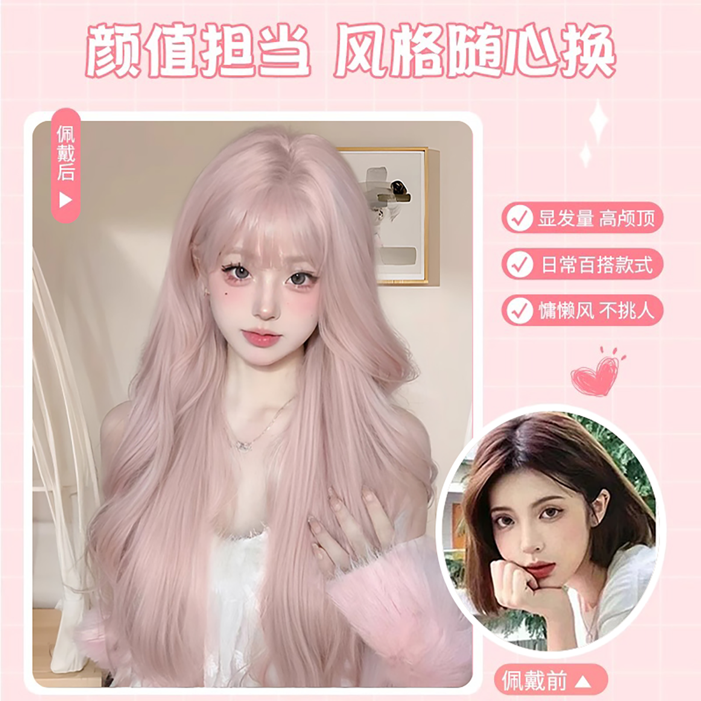 淘宝云鬓青丝馆,喵喵岛粉色假发甜美自然长卷发