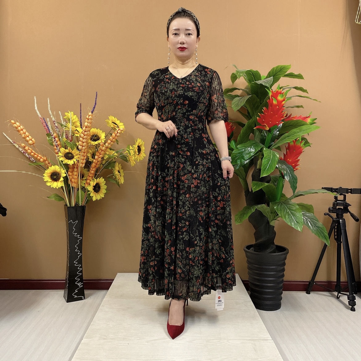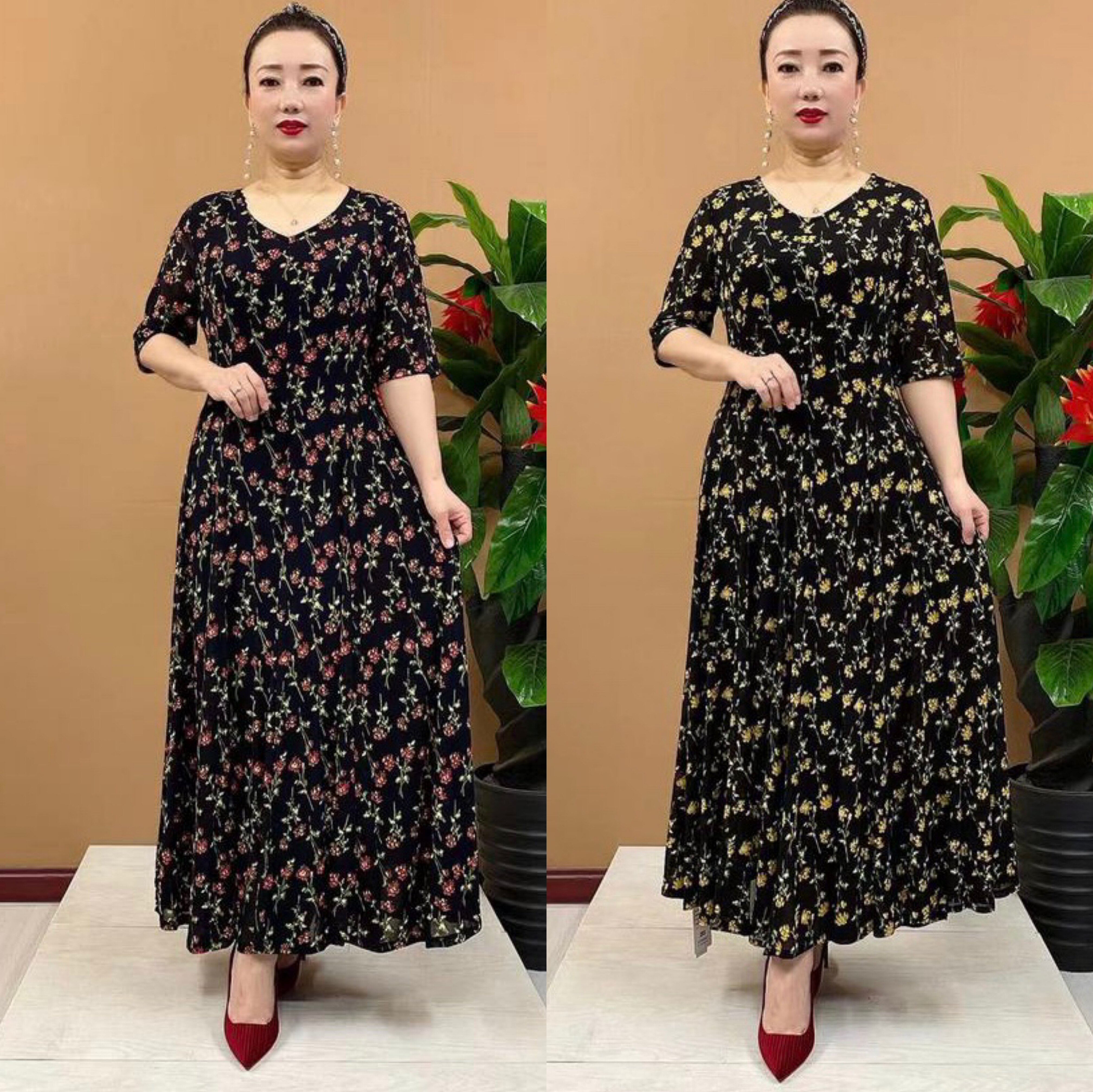 淘宝紫云裳服饰店,阔太太高弹连衣裙气质大码碎花裙子