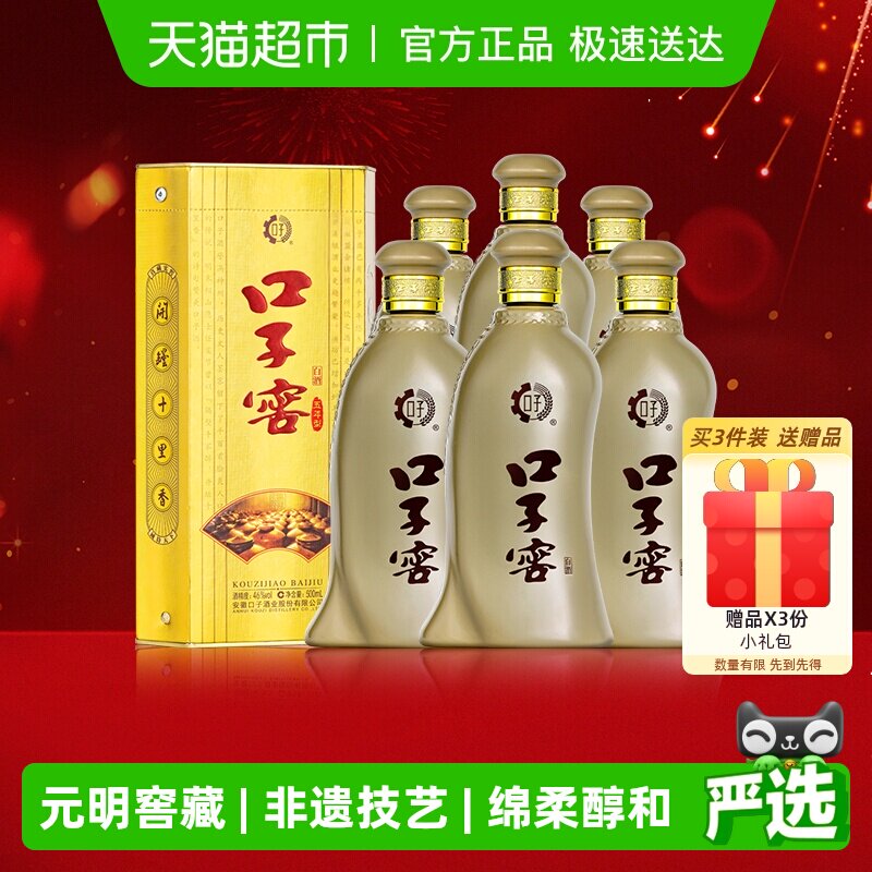 天猫超市,口子窖五年型46度500ml×6瓶白酒,真藏实窖 自然兼香