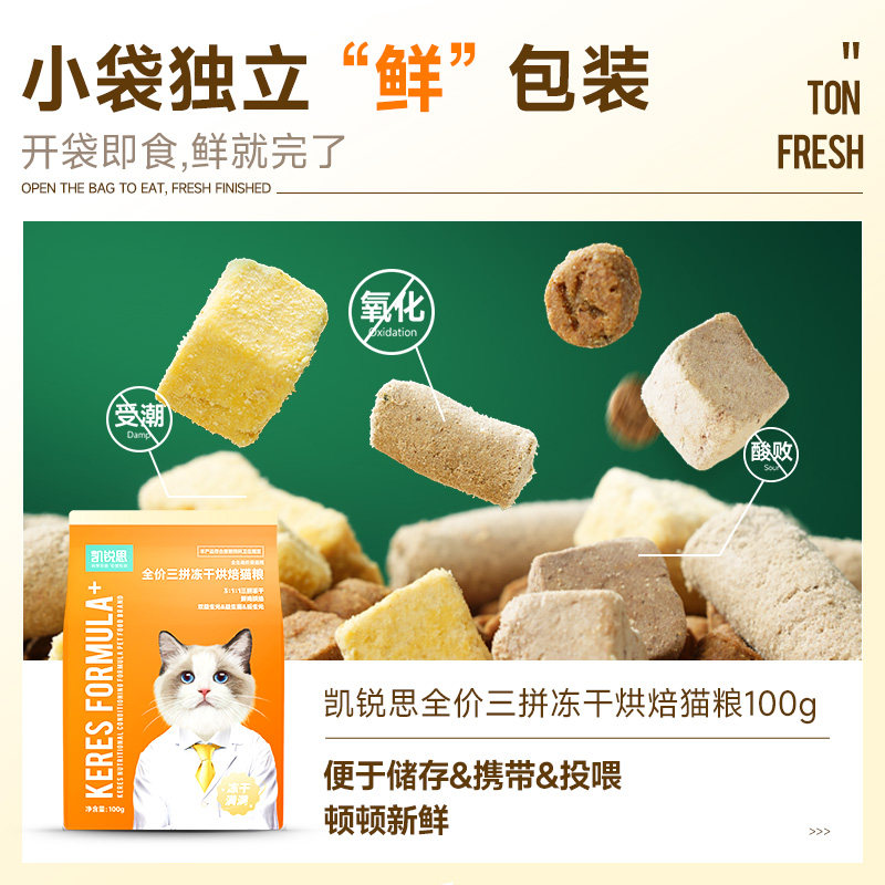 天猫超市,凯锐思三拼猫粮全阶段国产高烘焙,鲜鸡烘焙 冻干三拼 83%鲜肉 低温烘焙
