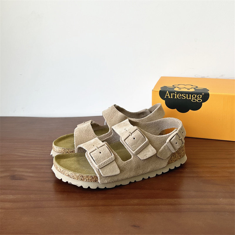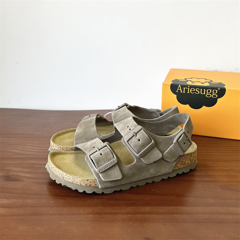 勃肯鞋磨砂牛皮真皮时装凉鞋女夏季皮带扣平底鞋休闲沙滩鞋博肯鞋