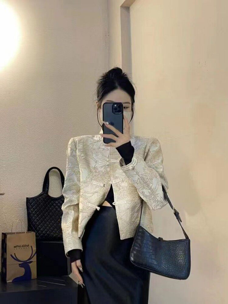 淘宝时尚品优衣号店,新中式国风盘扣短外套女秋季新款2023高级感复古重工刺绣开衫上衣