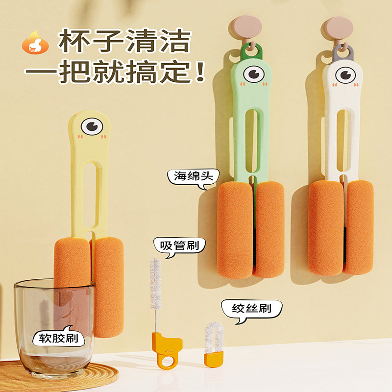 天猫蔓洁丽旗舰店,四合一杯刷水杯清洗神器缝隙奶瓶清洁刷保温杯口盖刷海绵长柄杯刷
