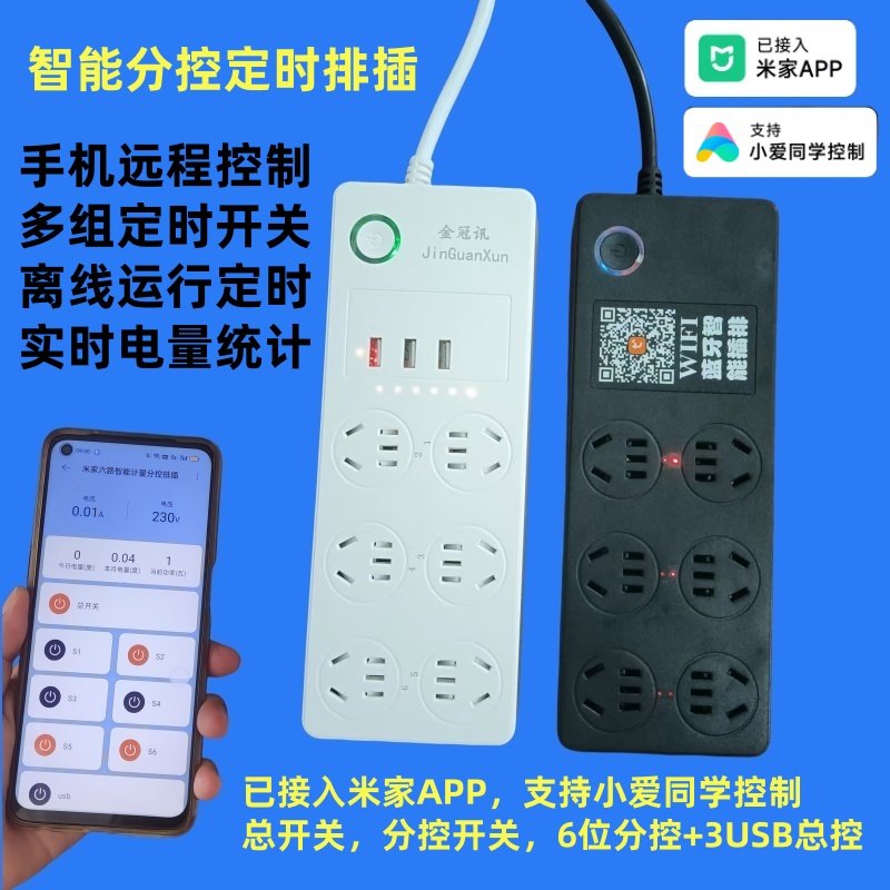 接入米家APP小爱语音分控定时计电量排插5G双频wifi插座涂鸦插板