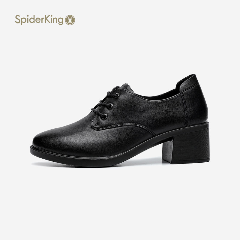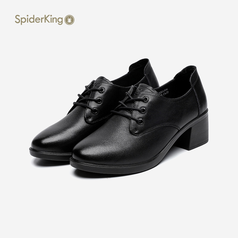 天猫蜘蛛王官方旗舰店,蜘蛛王春季时尚粗跟妈妈皮鞋,牛皮鞋面,防滑耐磨