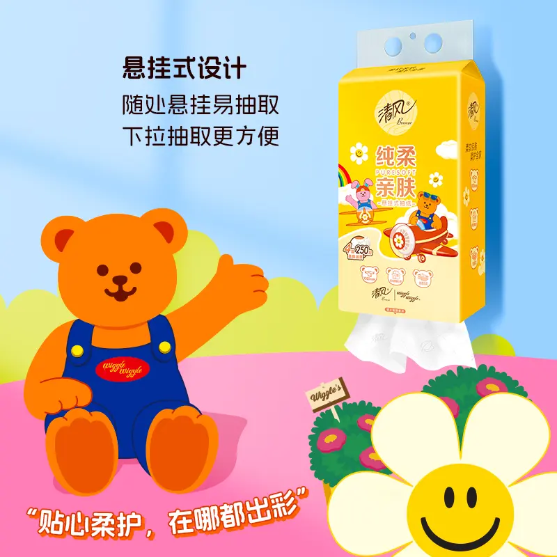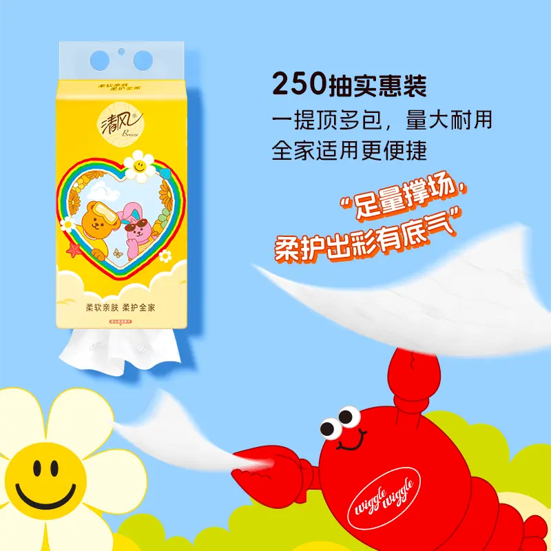 淘宝抖音同款低价店,清风挂抽10提wiggle联名抽纸4层加厚250抽纸巾整箱家用悬挂卫生纸