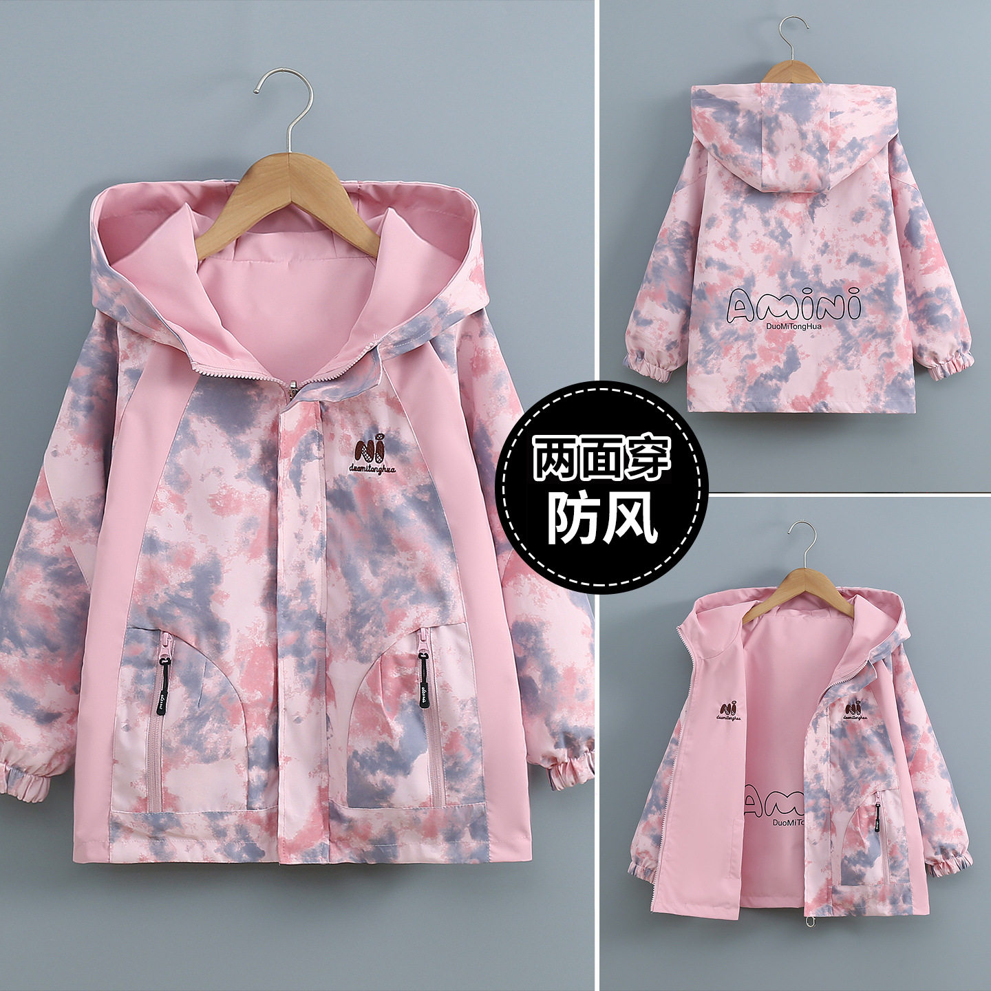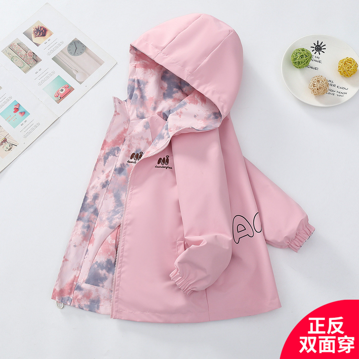 淘宝喜乐贝贝亲子时光,女童春秋双面穿防风冲锋衣