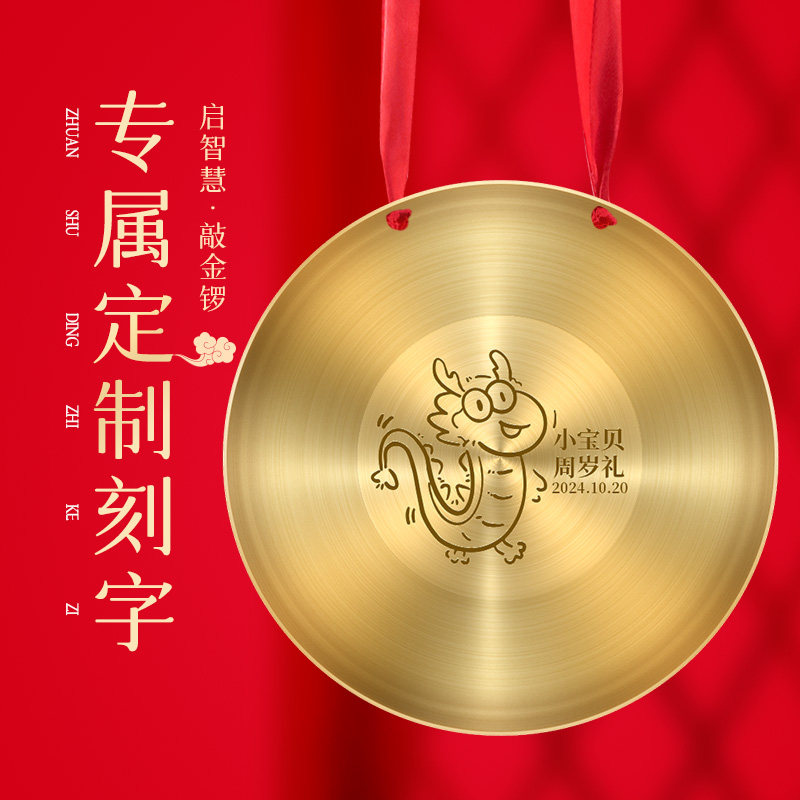 天猫天天特卖食品直营,新中式抓周道具传统宝宝启智锣智慧锣一周岁布置铜锣抓阄全套聪明