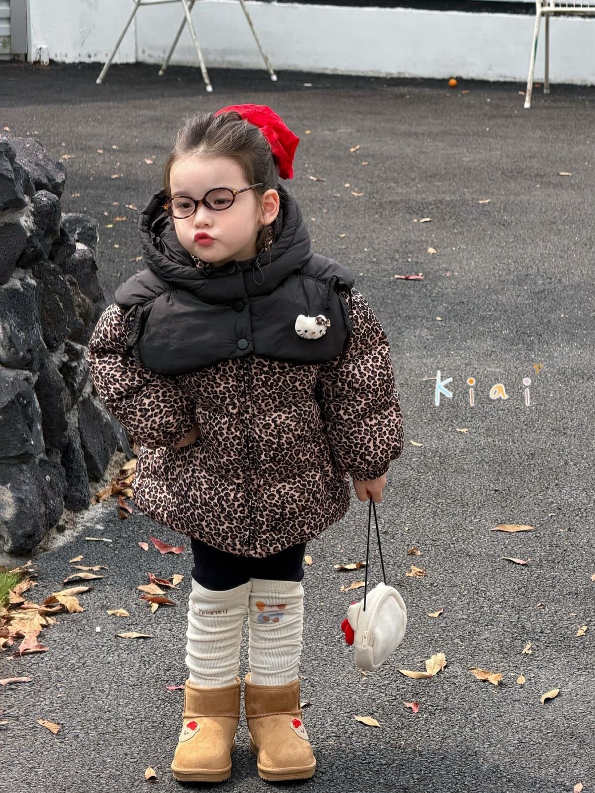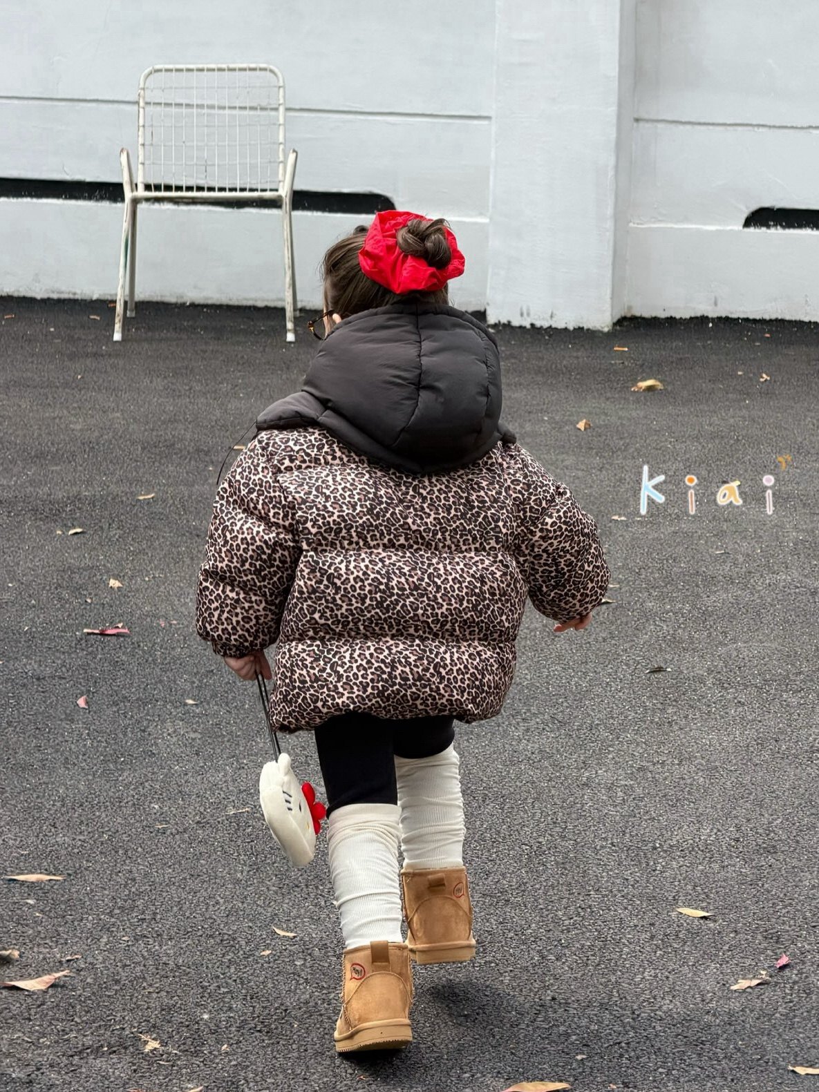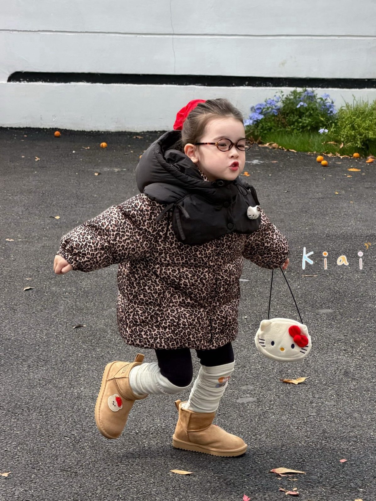 淘宝凡妈韩国童装,女童韩版时髦豹纹KT猫羽绒服