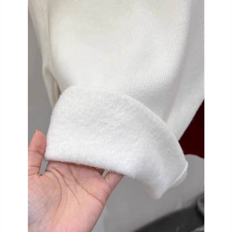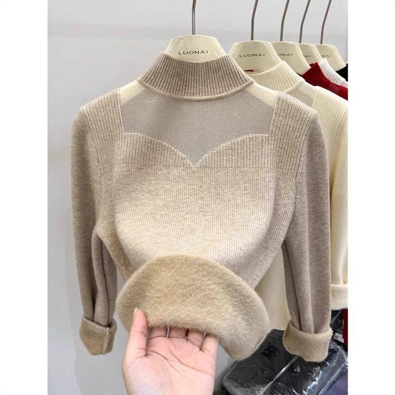 天猫1688官方工厂,加绒毛衣女加厚冬季大码内搭一体绒网纱上衣半高领秋冬打底衫女