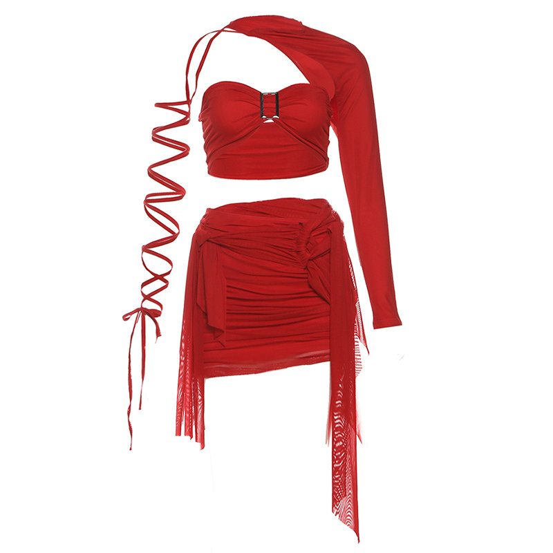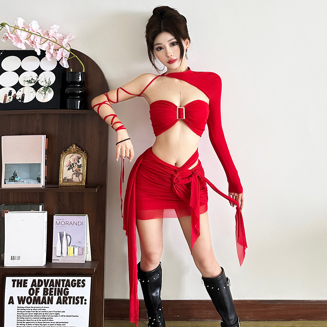 淘宝GDNH怪诞女孩,热辣性感解构抹胸上衣半身裙套装