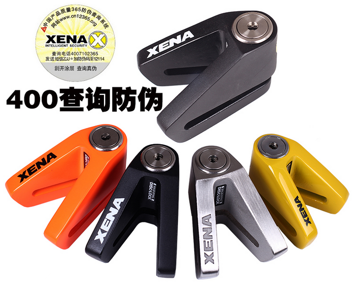 淘宝金陵小筑,英国xena x1 x2摩托车400碟刹锁,X2有14mm粗锁芯加反扣设计,使撬开的可能性接近0,为数不多的全钢碟锁,强度*好,400防伪查询,赠送原厂固定锁架,可严密配合不会震动不会磨损油漆。新到2017款土豪金色x2碟锁。赠送的提醒绳有绿色和橙色,不指定颜色则随机赠送提醒绳颜色。