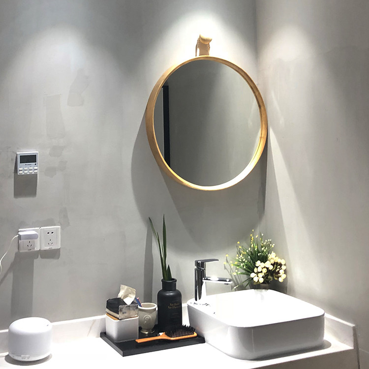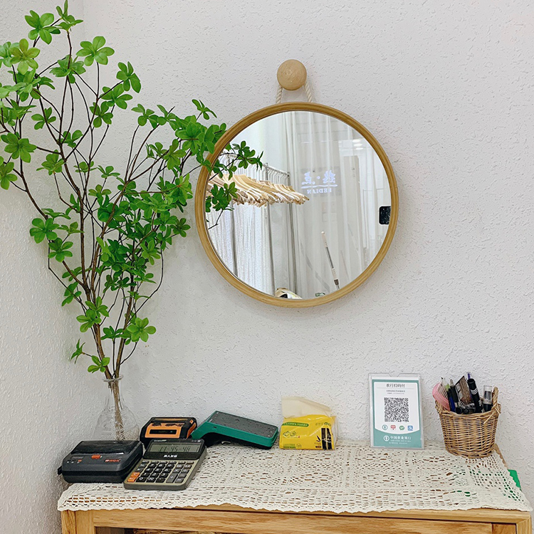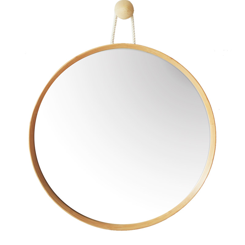 日式卫生间浴室挂墙镜子挂镜吊镜浴室镜梳妆镜化妆镜实木壁挂圆镜