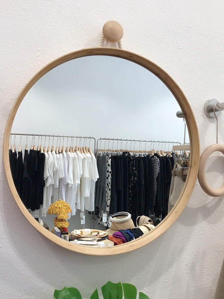 淘宝最原木-设计师家居,日式卫生间浴室挂墙镜子挂镜吊镜浴室镜梳妆镜化妆镜实木壁挂圆镜