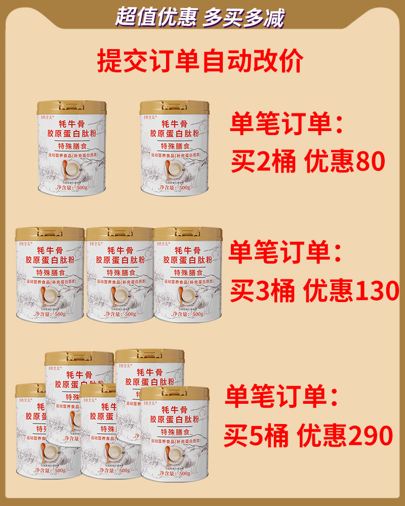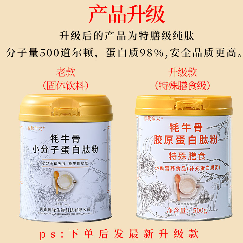 淘宝春秋全太官方企业店,0添加纯牦牛骨小分子活性肽粉胶原蛋白正品多肽耗低聚肽500克/桶