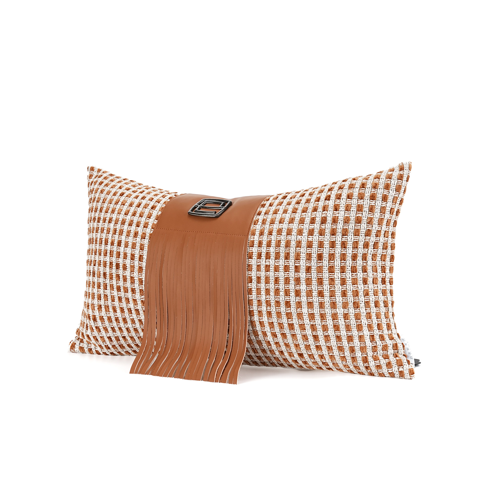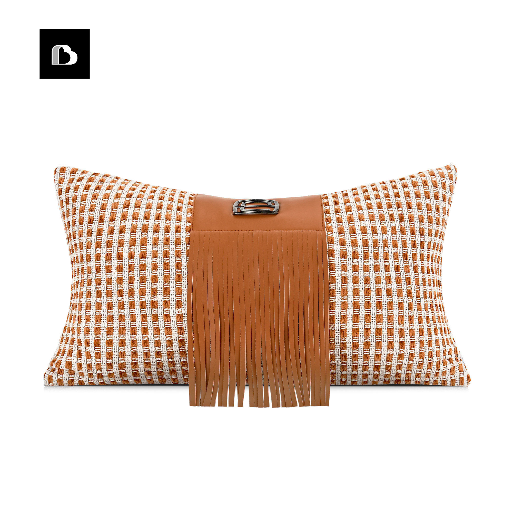淘宝柏洛斯家居,柏洛斯 轻奢欧式流苏格子橙色抱枕样板间别墅腰枕沙发靠枕套靠枕