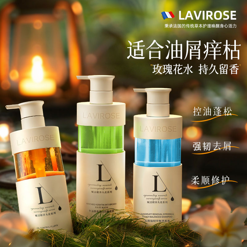 天猫LAVIROSE拉维洛丝旗舰店,氨基酸洗发水控油去屑柔顺发膜,进口香氛控油蓬松去屑洗发水发膜沐浴露套装