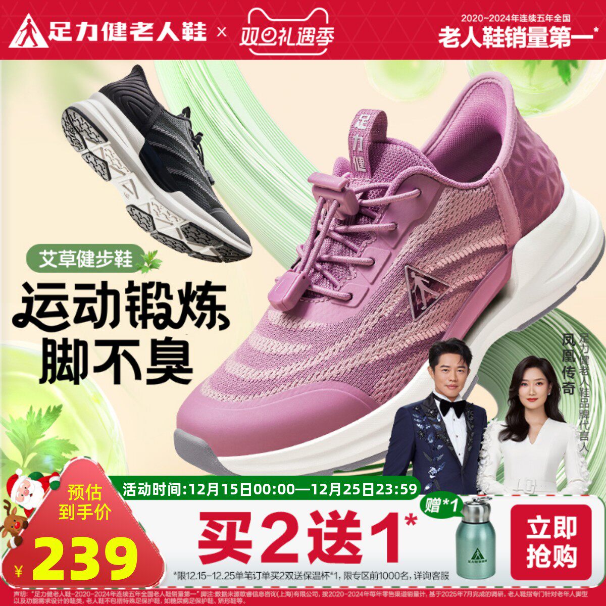天猫足力健旗舰店,足力健老人鞋旗舰店2024春季休闲,足弓拖搭配减震助力鞋底,走路省劲