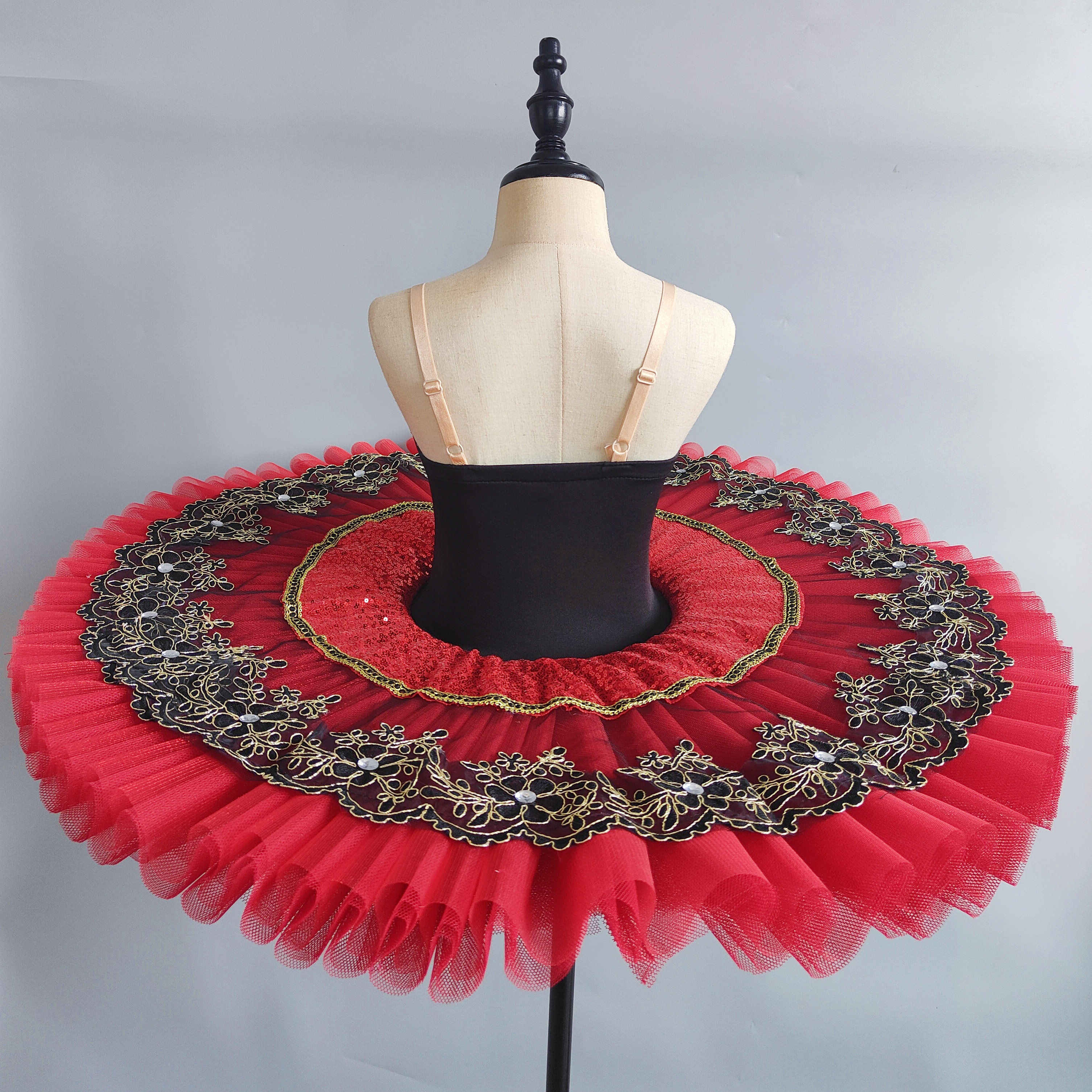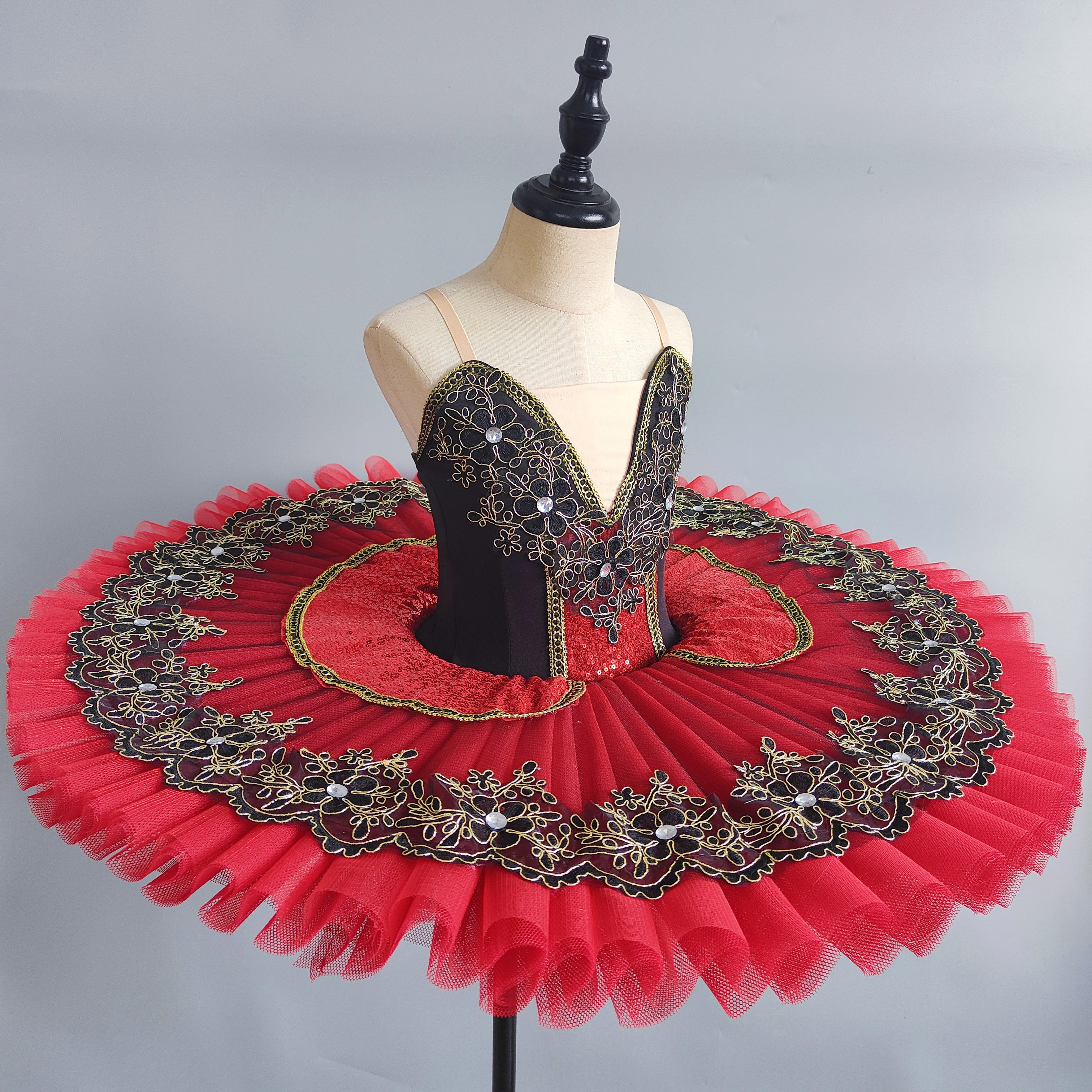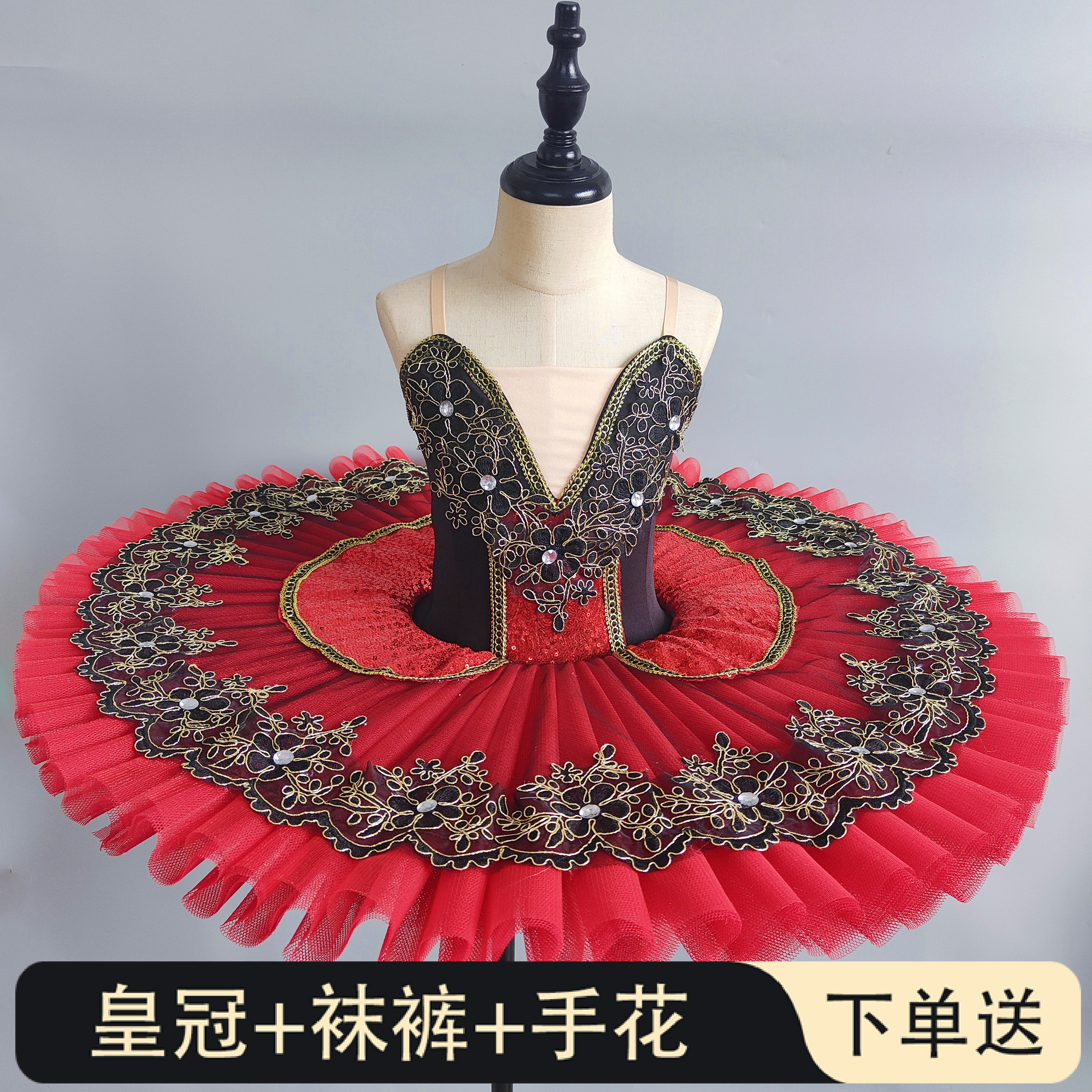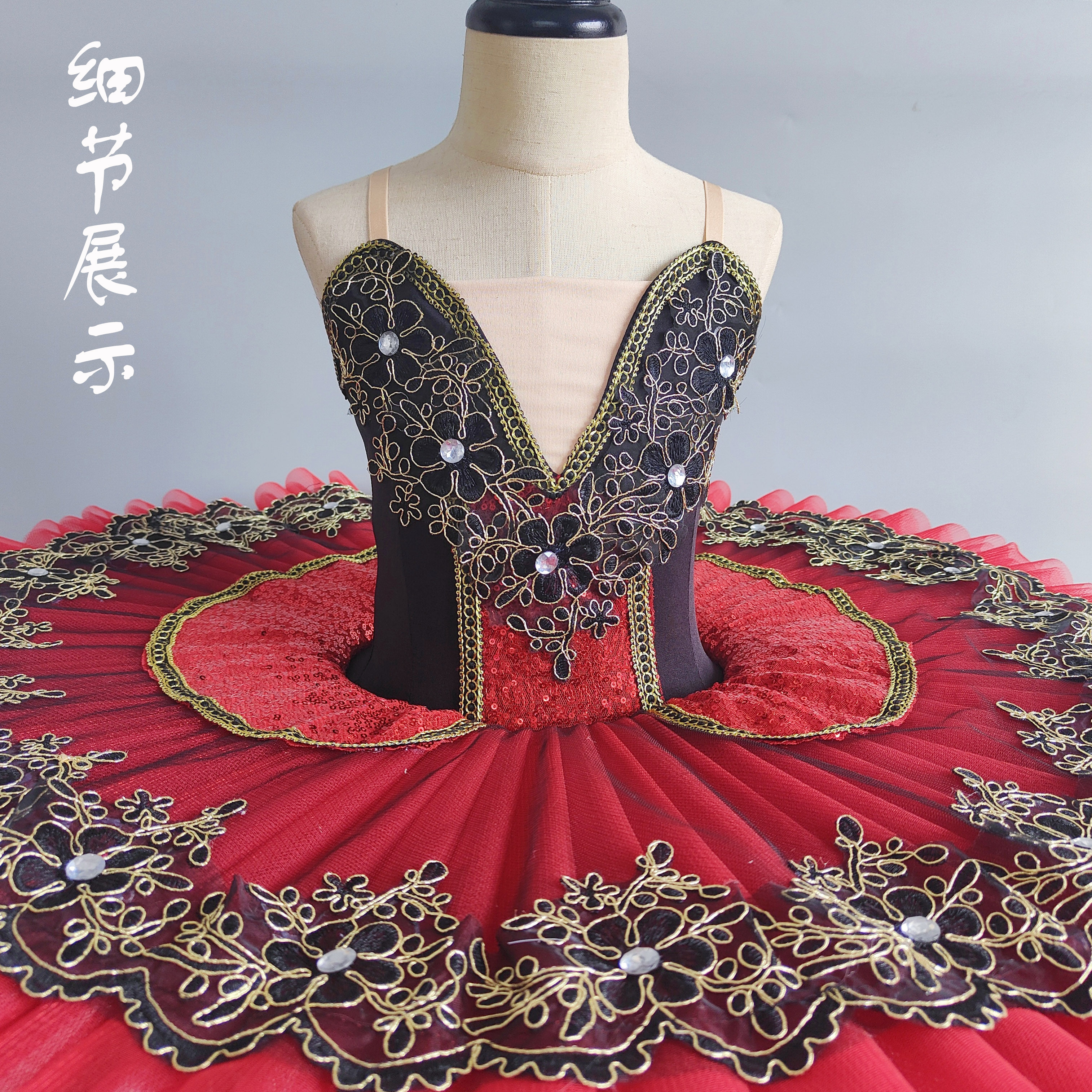 儿童专业芭蕾舞裙黑红亮片堂吉诃德芭蕾TUTU裙表演服小天鹅演出服