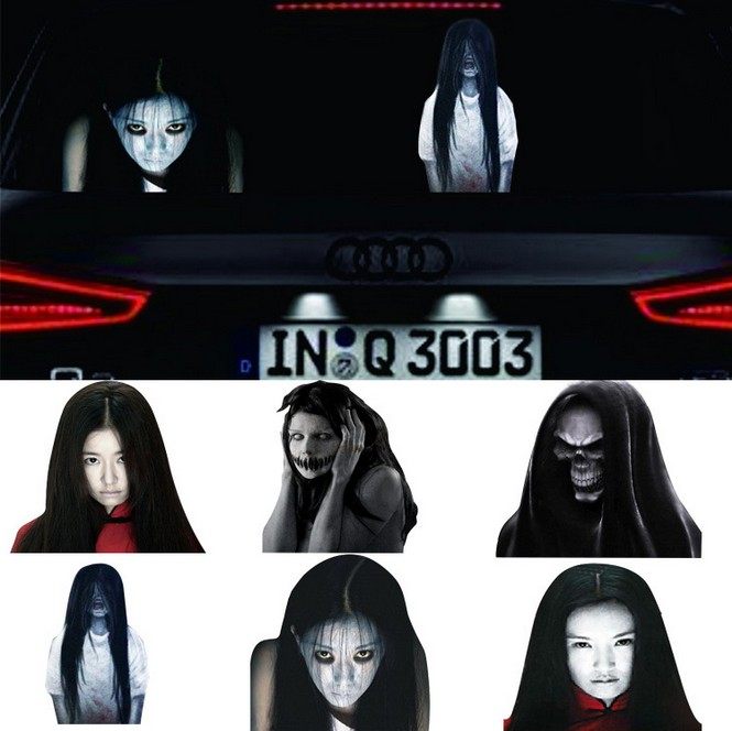 淘宝速龙五金百货,远光灯反光车贴女魔鬼贞子个性汽车后挡风玻璃车贴吓唬远光灯