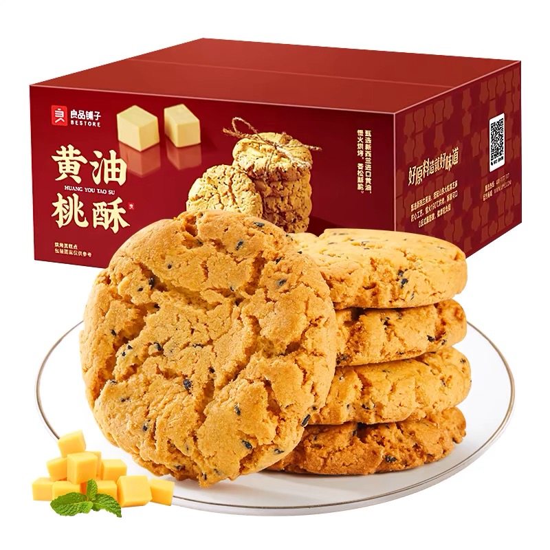 淘宝蓝鲸爱丽丝,黄油桃酥400g良品铺子糕点核桃酥