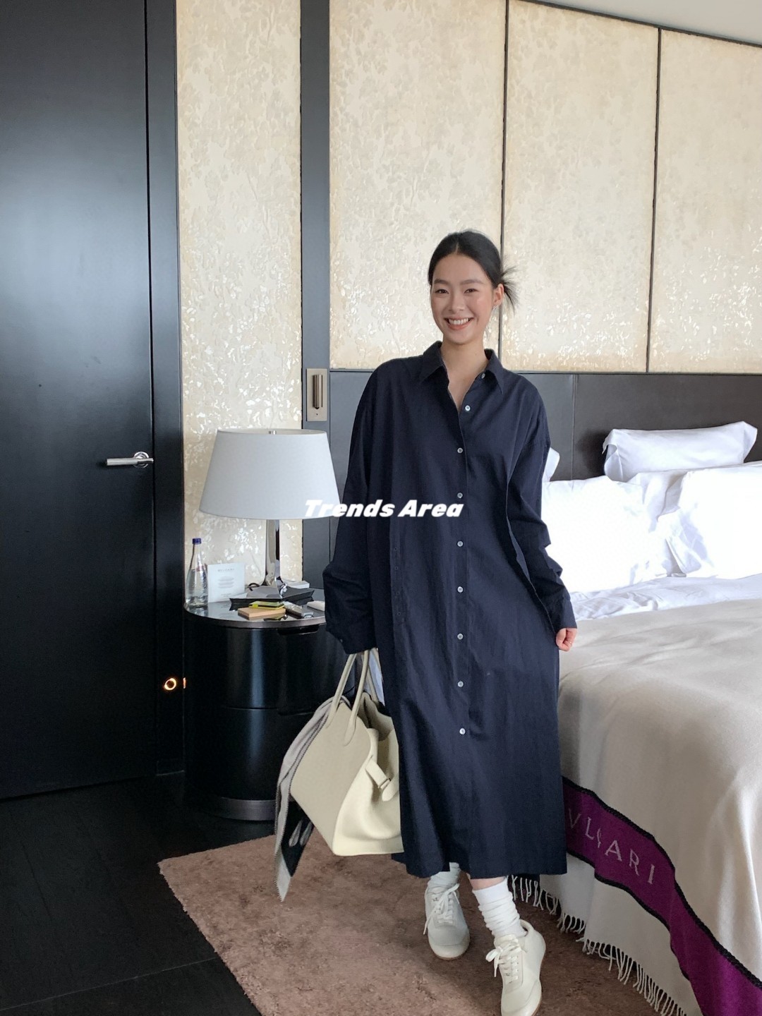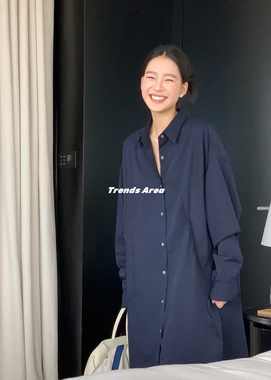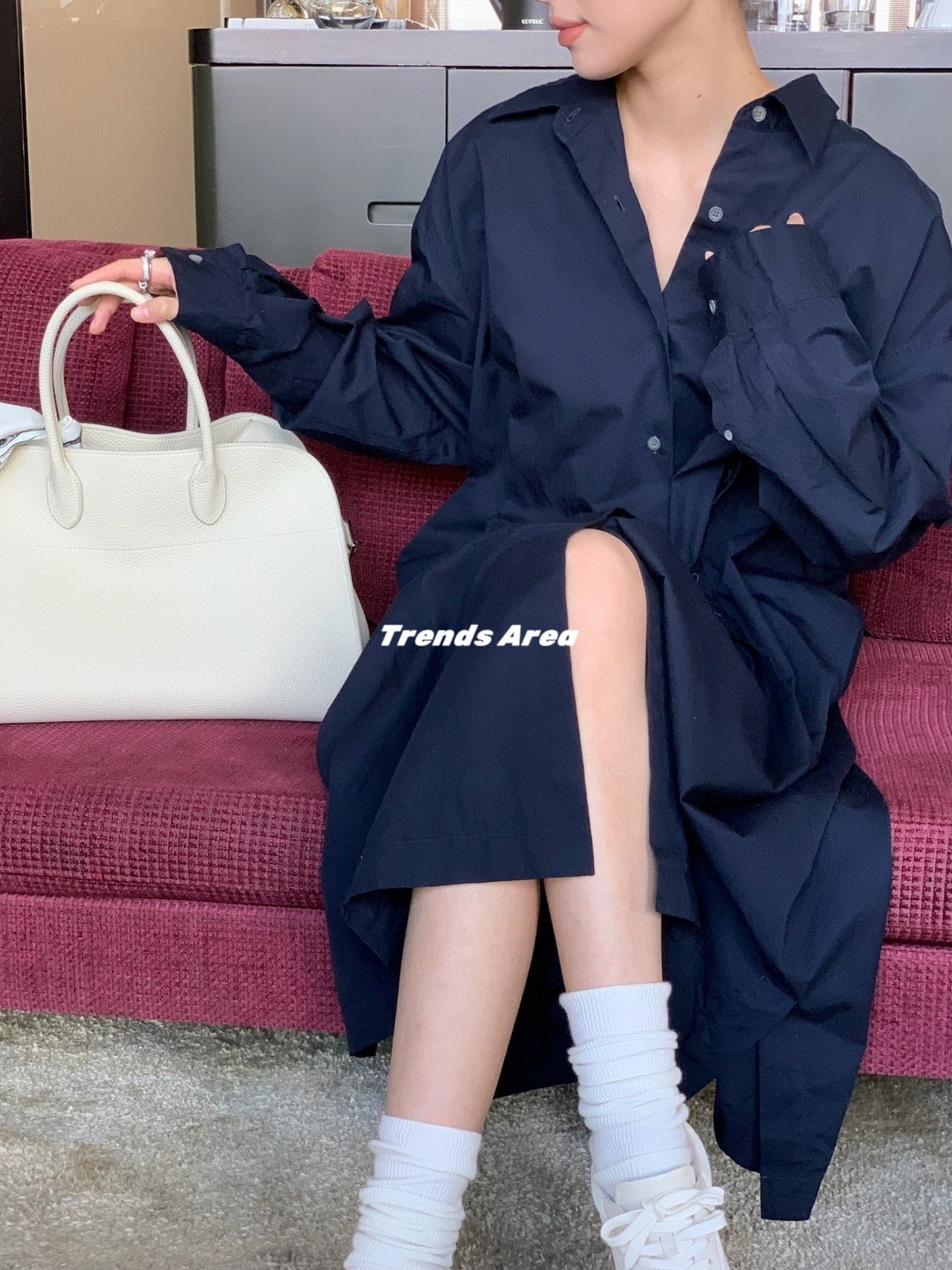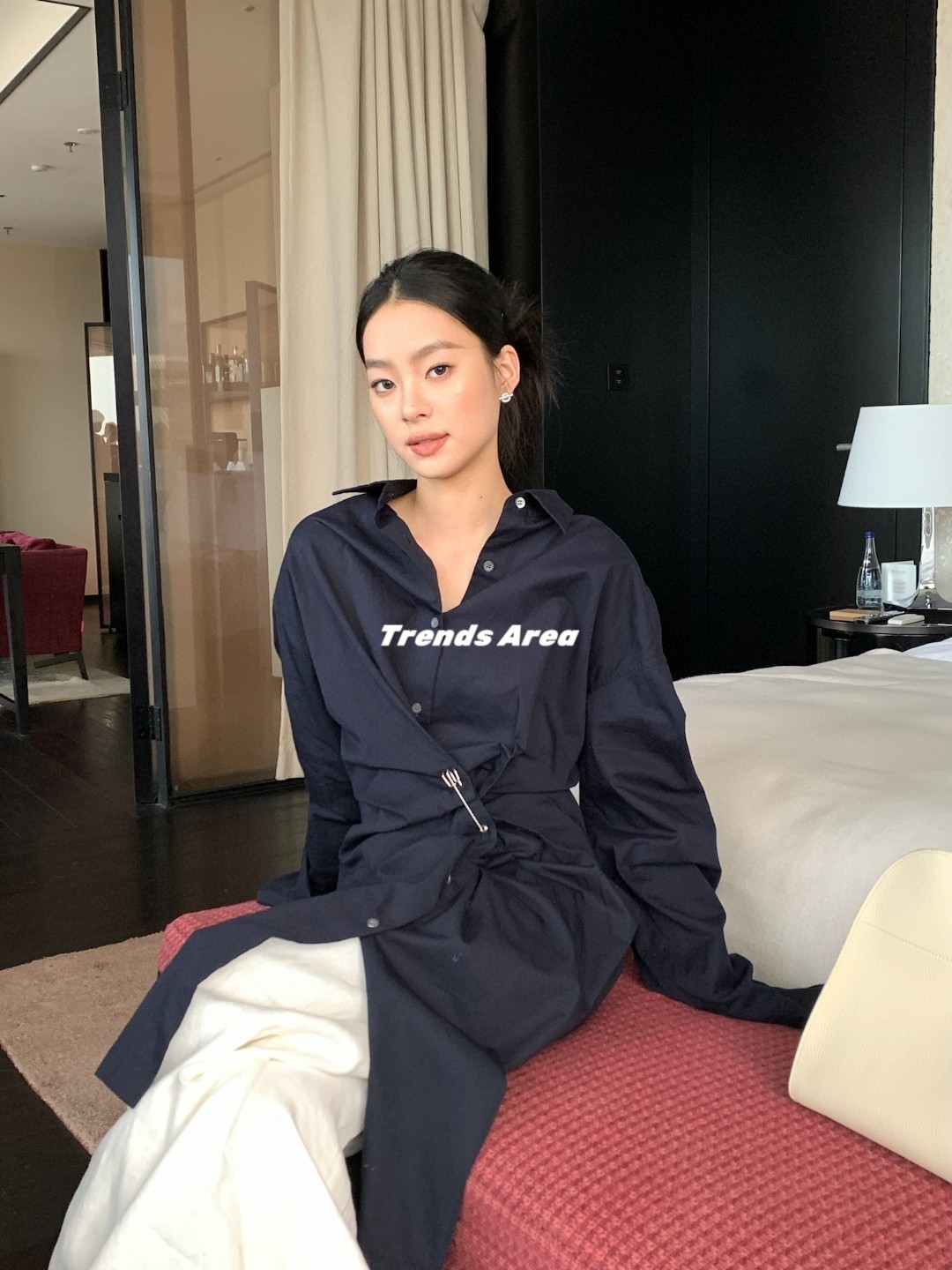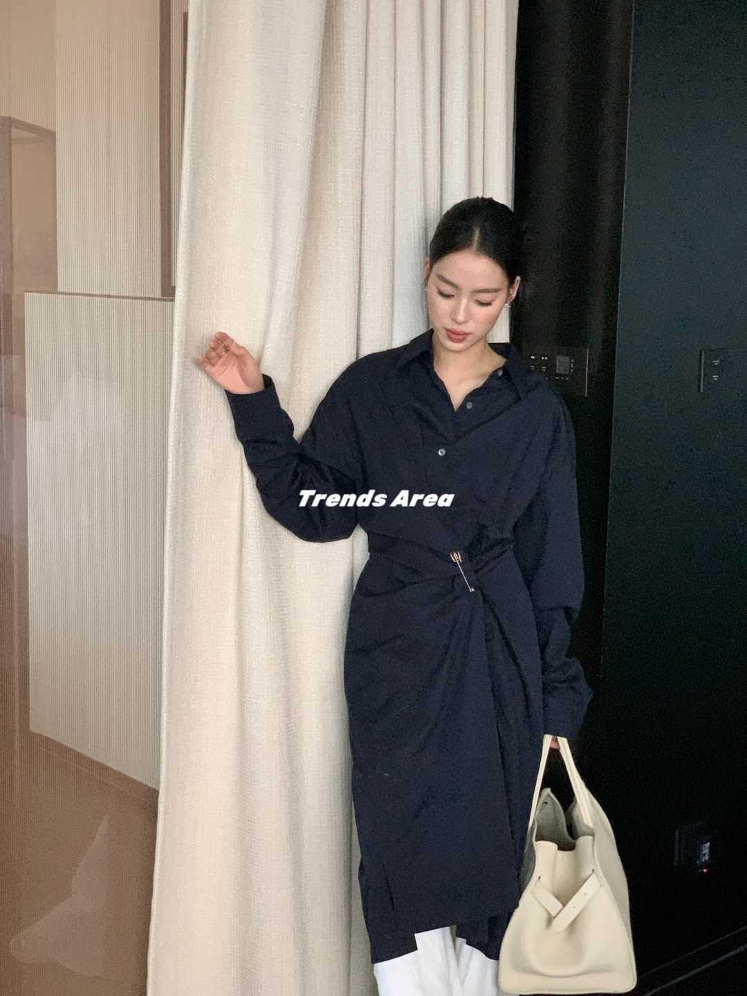 淘宝Trends Area 高端女装集合店,Trends Area 定制 25秋冬dvn法式慵懒感深藏蓝别针褶皱收腰衬衫裙