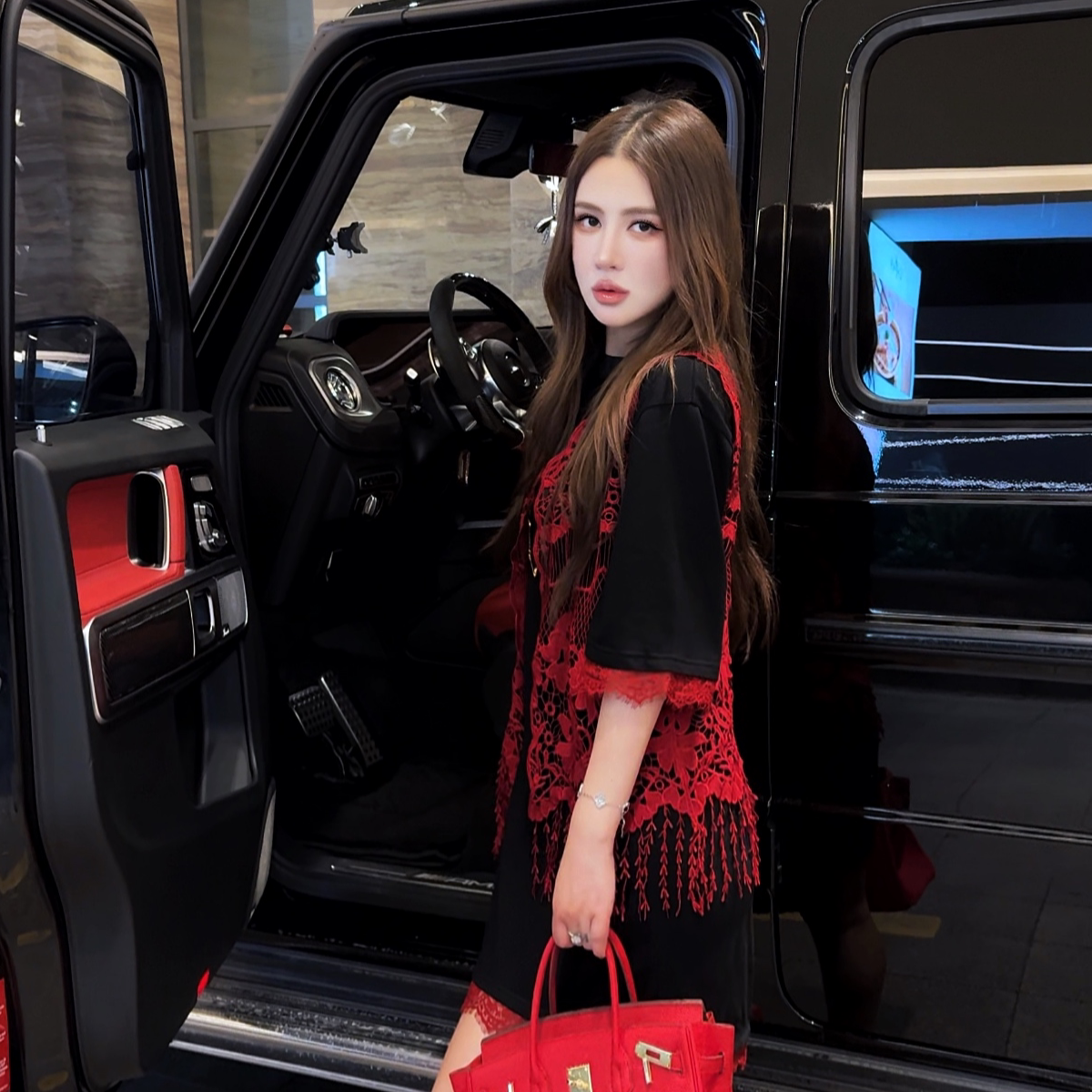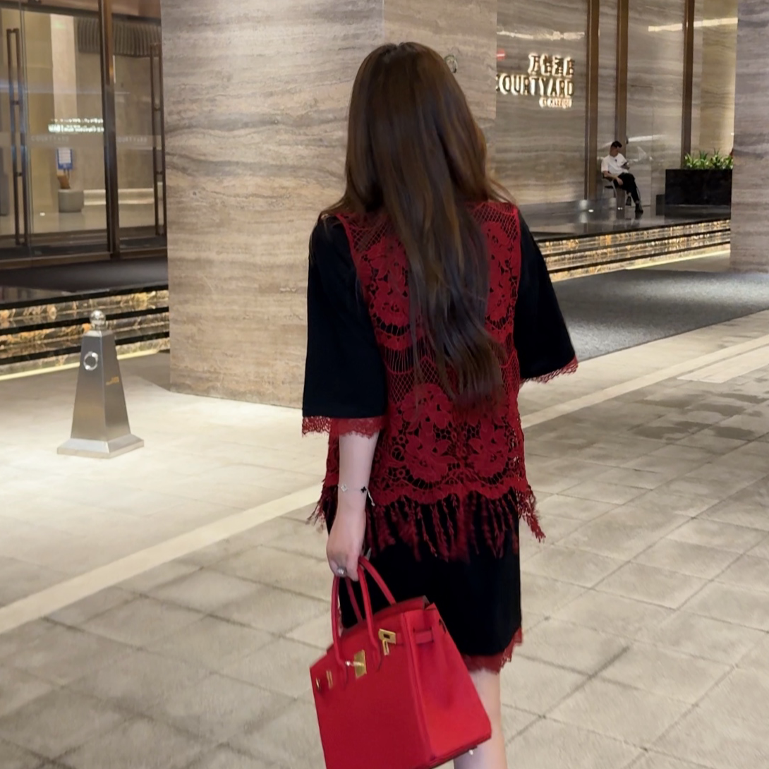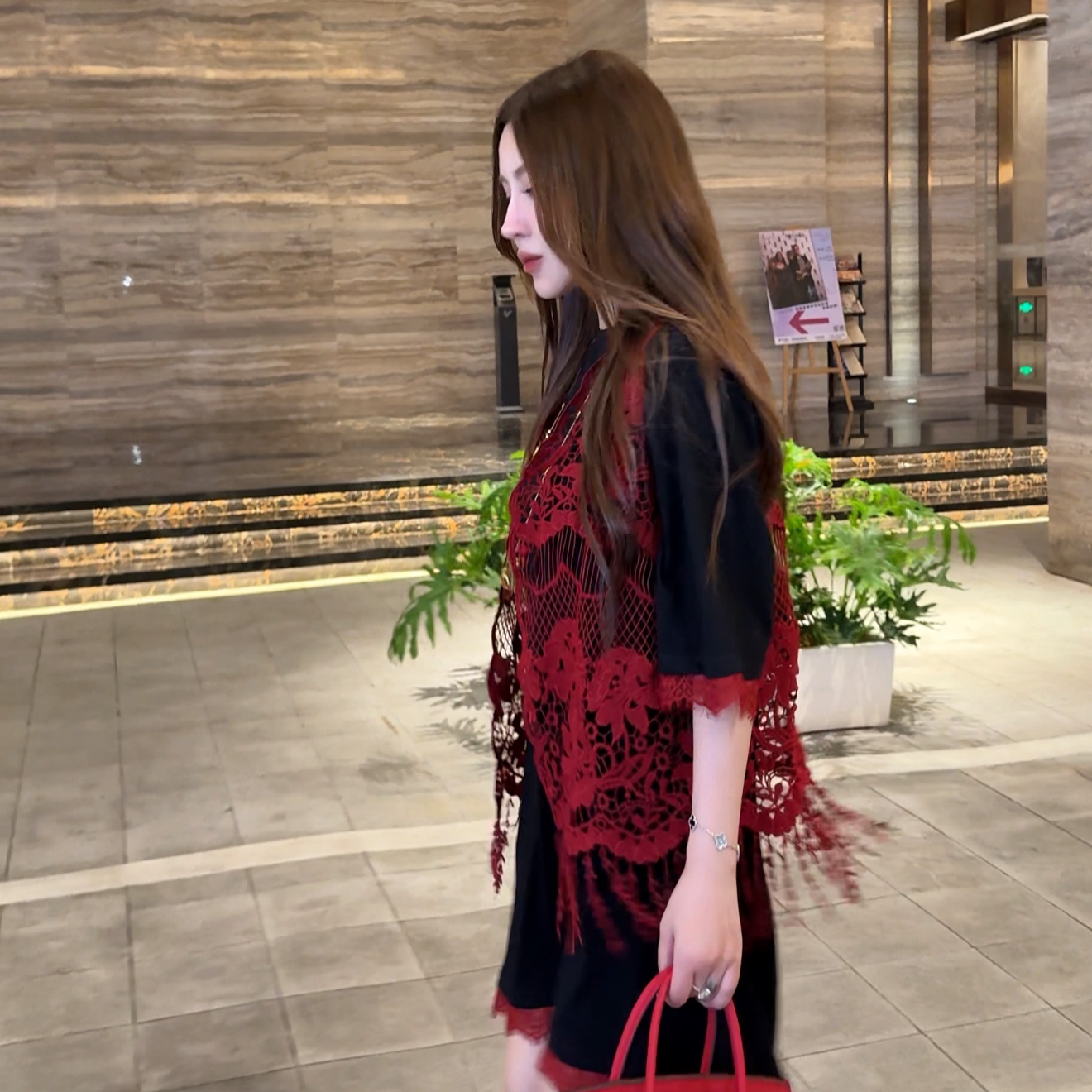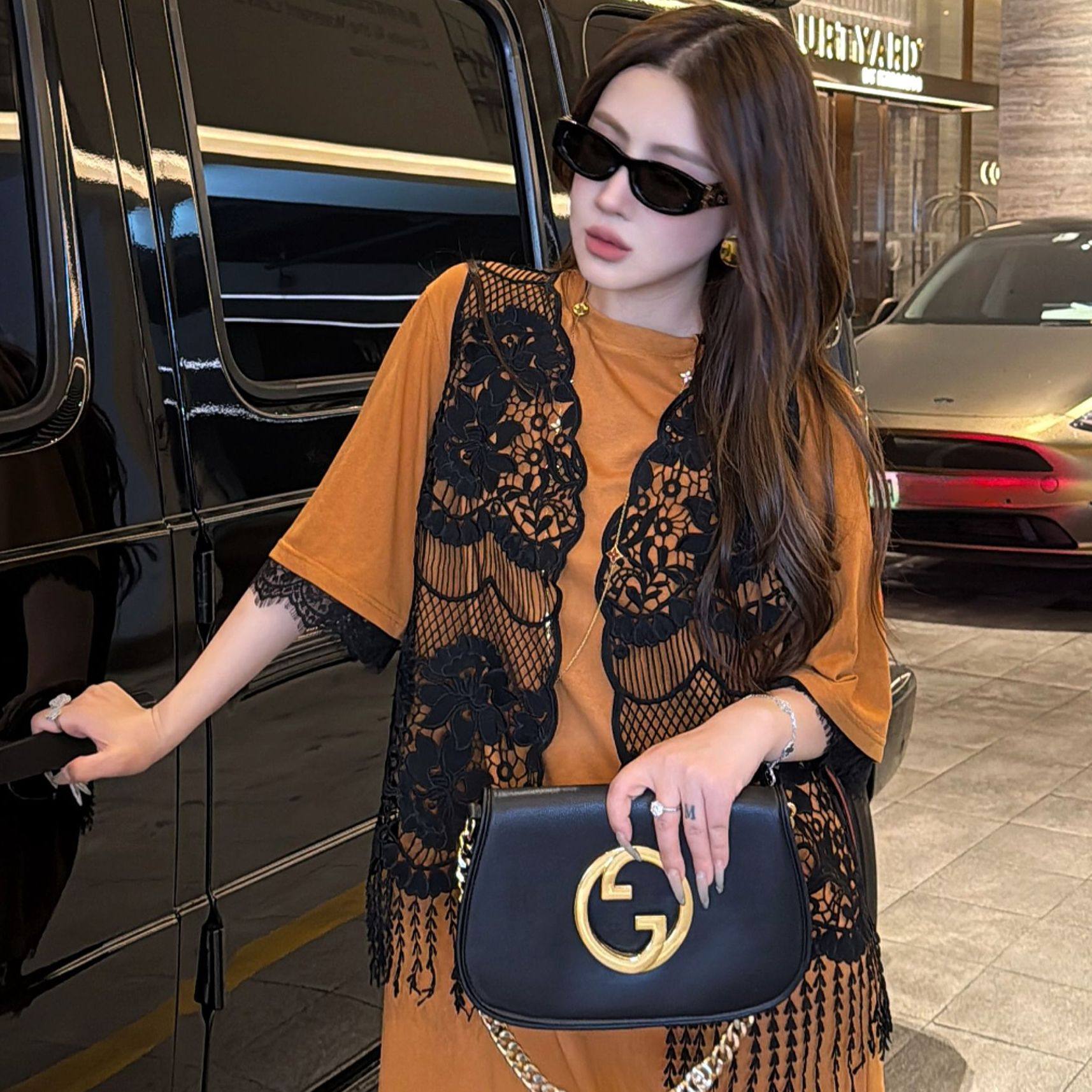 淘宝郭彦彤Gyantong,复古流苏蕾丝马甲镂空设计感