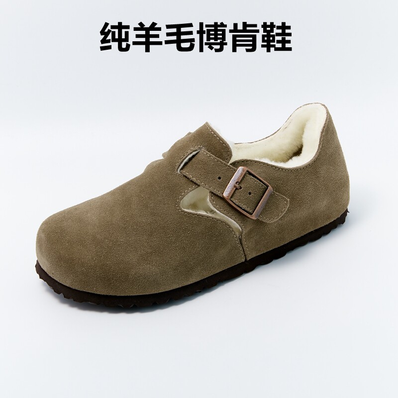 天猫沫克林旗舰店,勃肯鞋女秋冬季保暖加绒纯羊皮毛博肯包跟拖鞋厚底防滑外穿不臭脚