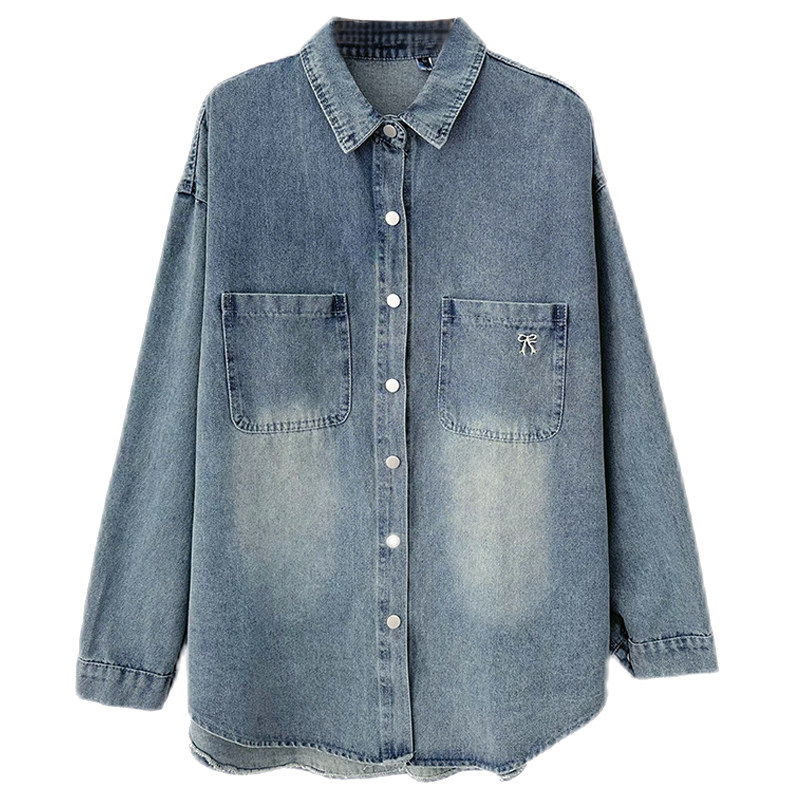 港风复古宽松遮肉百搭牛仔衬衫