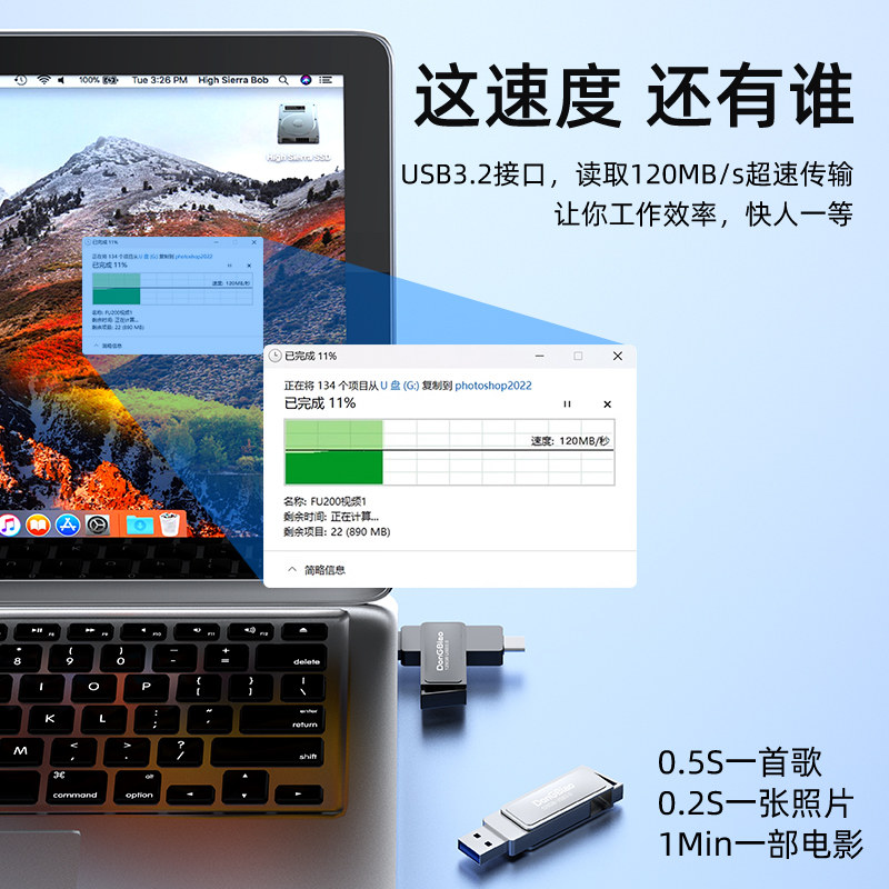 天猫天天特卖工厂店,手机u盘typec双接口可插电脑手机两用128g扩容两用大容量双头优盘,合金打造 USB3.2高速180M传输