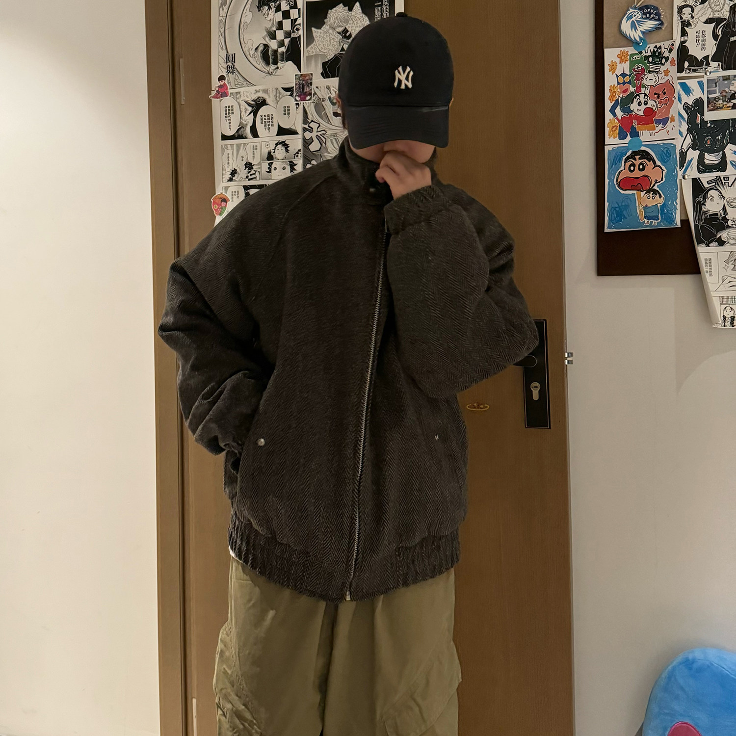 淘宝秀枫原创Studio,美式复古人字纹羊毛棉服