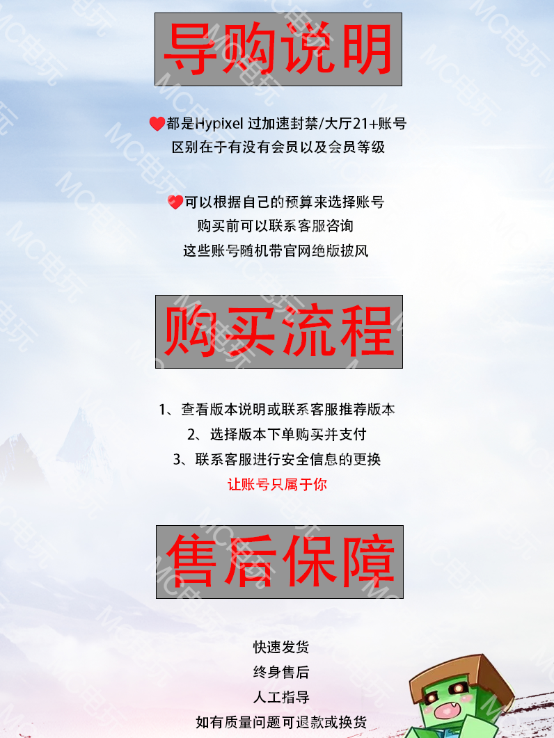 淘宝MC电玩,微软我的世界Hypixel账号 过加速封禁 任选VIP/VIP+/MVP/MVP+会员