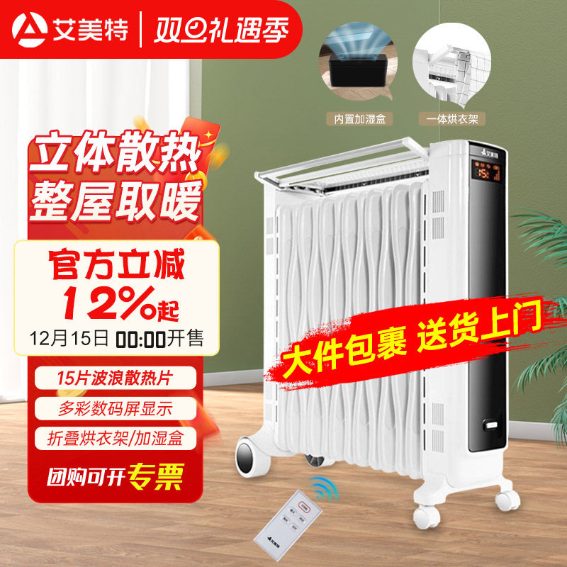 天猫艾美特元亨专卖店,艾美特油汀取暖器油酊电暖气片,3000W大功率快速取暖 15片