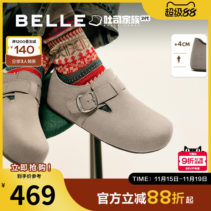 天猫百丽官方outlets店,百丽厚底全麦吐司2代勃肯鞋女25新款内增高乐福单鞋子E1H1DCM5