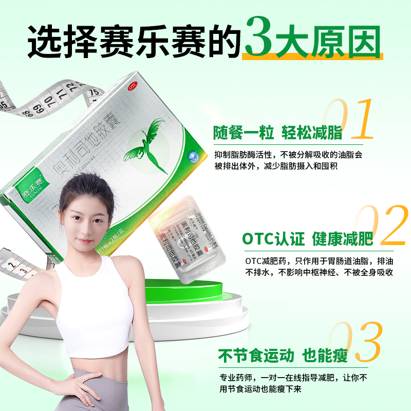 天猫4829196111892869121,【赛乐赛】奥利司他胶囊60mg*2粒/盒,赛乐赛奥利司他胶囊