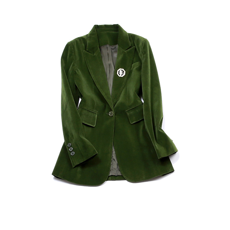 墨绿色西装外套2024新款春秋复古女装气质职业高级感丝绒西服上衣