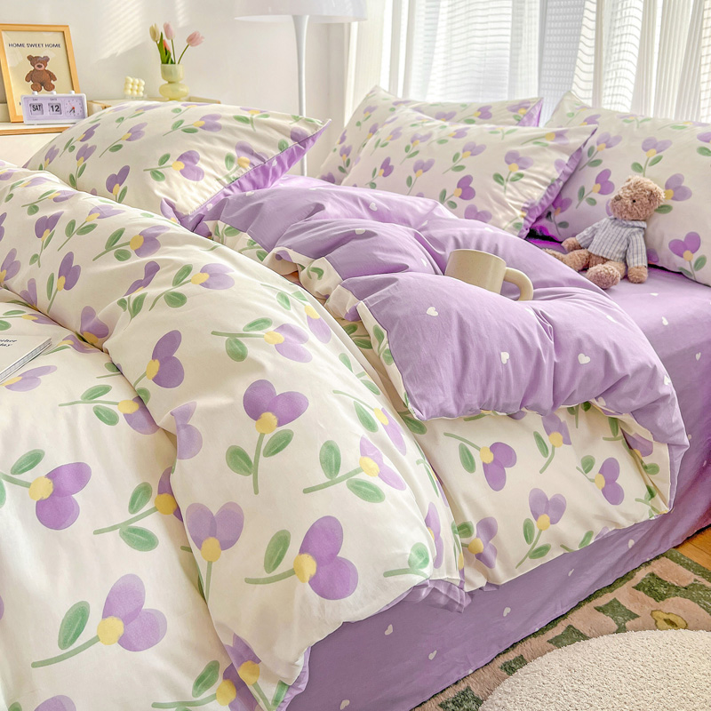 新款40支斜纹全棉AB双面活性印染 纯棉双人床单款四件套13372