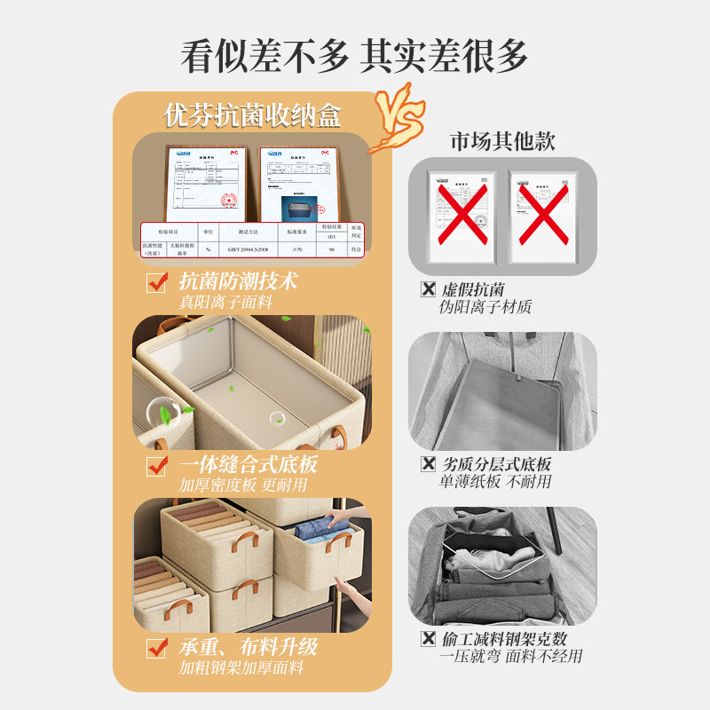 天猫优芬家居旗舰店,抗菌阳离子收纳箱衣服钢架整理盒,抗菌阳离子面料 亲肤无异味 实芯钢架大容量