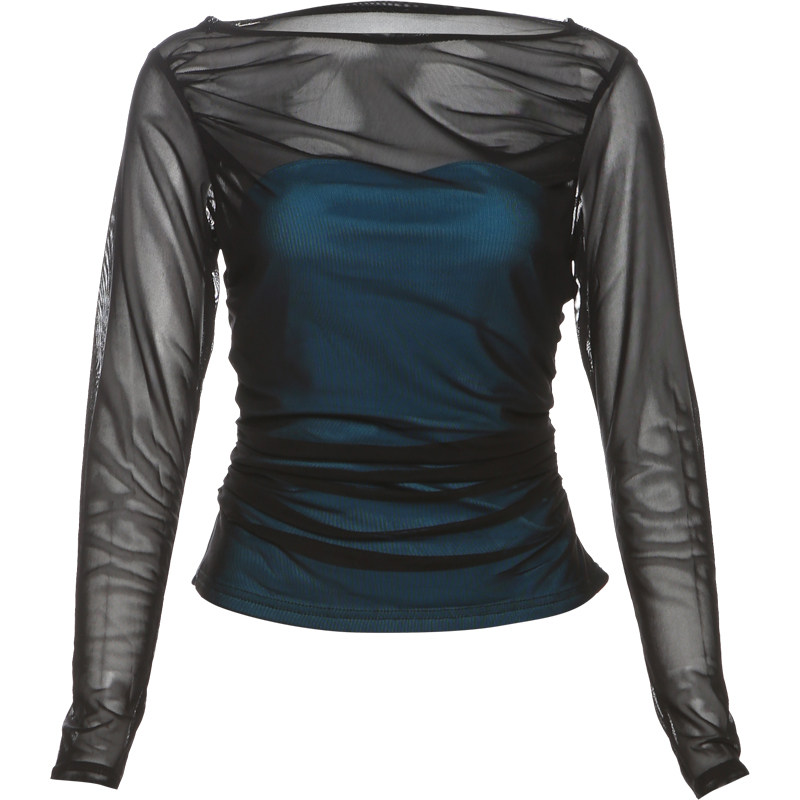 淘宝KLIOU潮人馆,钓系御姐风网纱拼接显瘦两件套