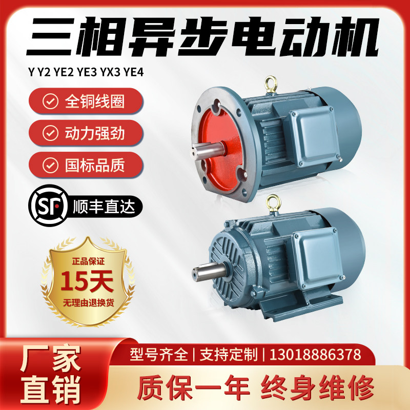 三相电机Y90L-4 1.5KW/0.75/1.1/90L-2 2.2千瓦全铜YE2电动机380V