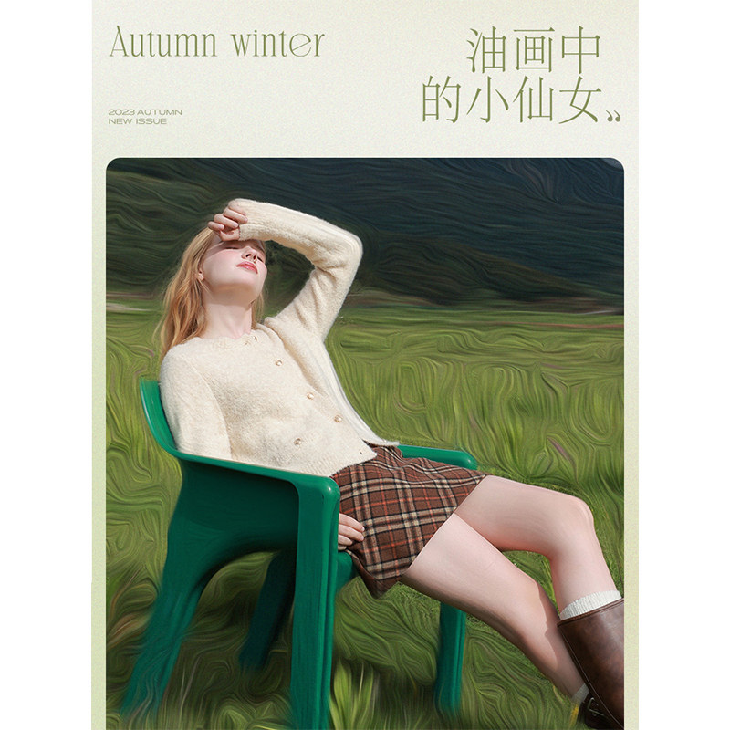 三彩2023秋冬季新款短款圈圈纱针织衫开…