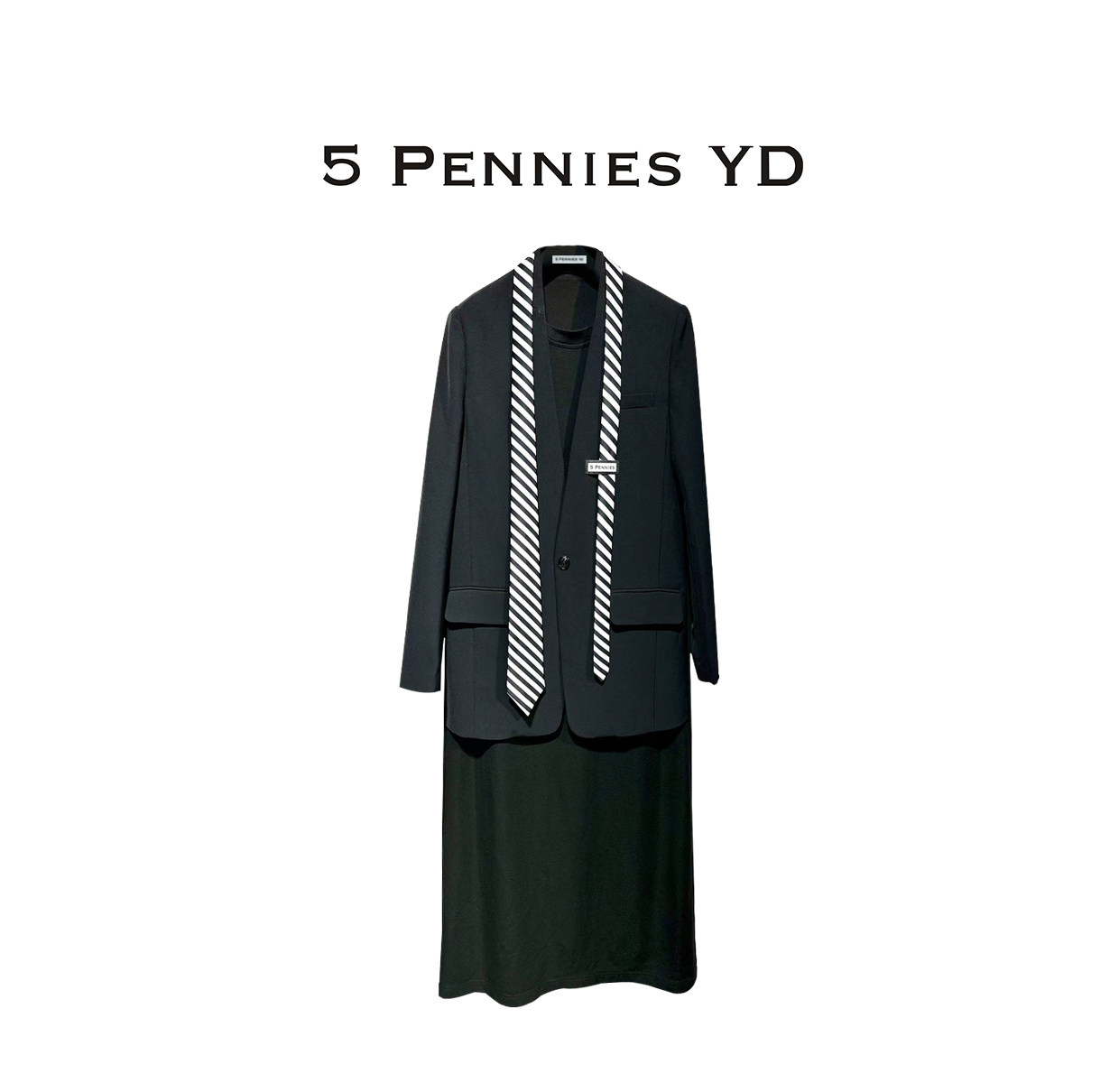 淘宝5PENNIESYD,5PENNIESYD设计师款秋季原创中长款休闲宽松假两件西服拼接连衣裙