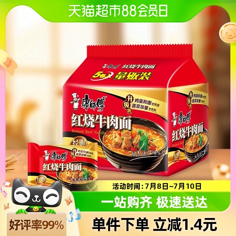 天猫超市,康师傅方便面经典袋红烧牛肉面103g×5袋泡面速食面,新老包装 更换克重 随机发货 实物为准