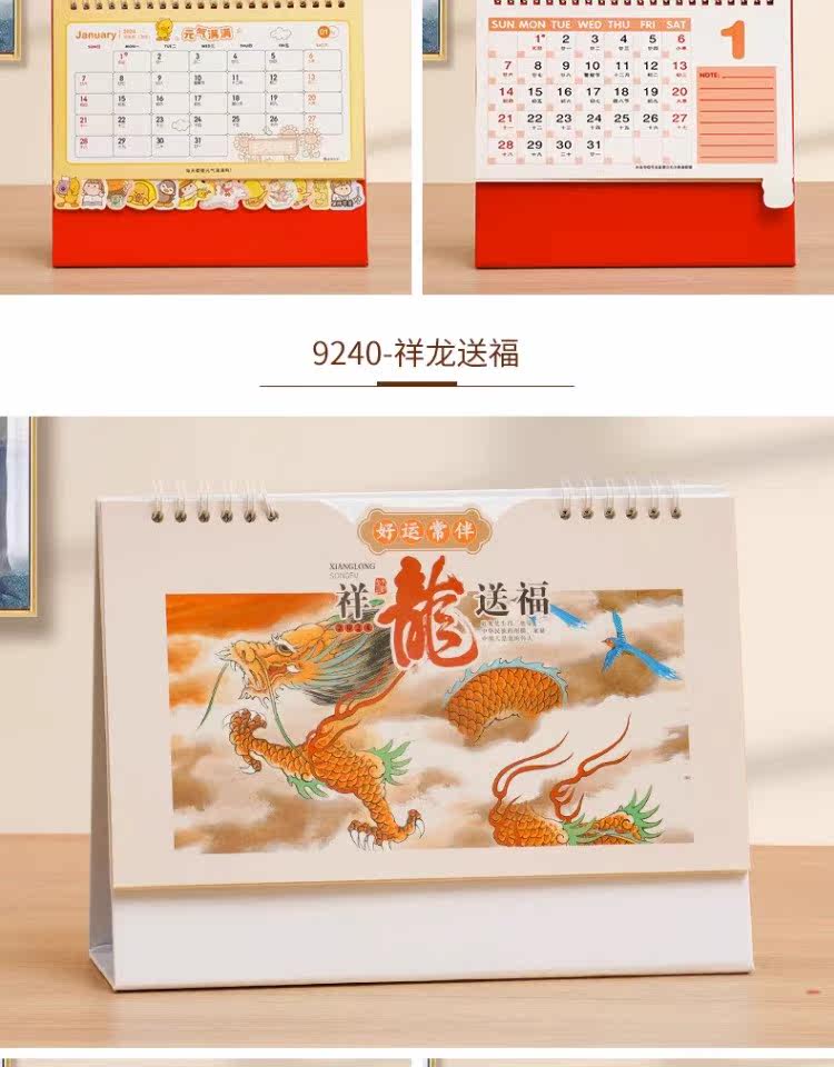 2024年龙年精美焕新艺术台历日历创意中国文化月历简约桌面装饰小