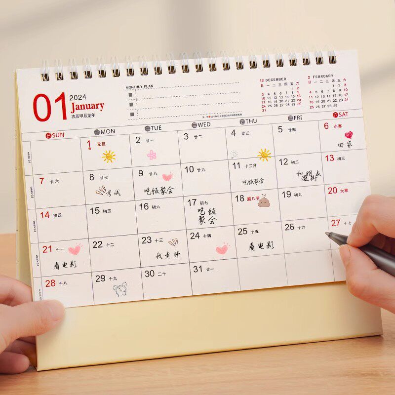 日历本2024年记事本日程本365天时间管理计划本可爱少女心ins风效率手册文艺精致工作小秘书记账记事备忘本子